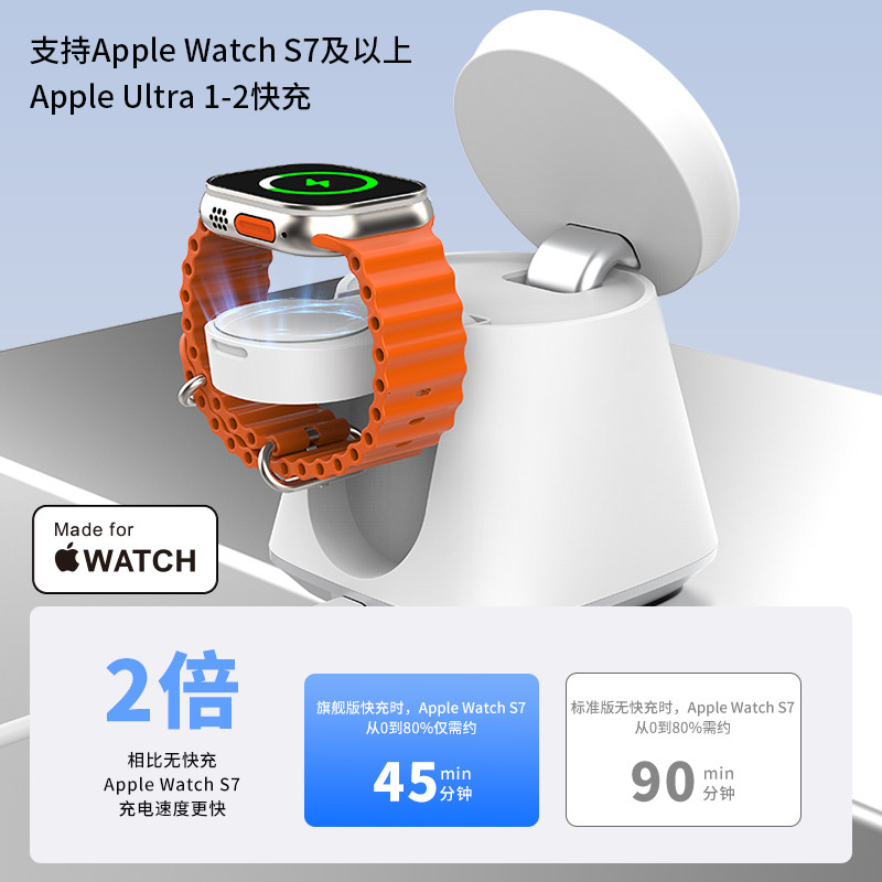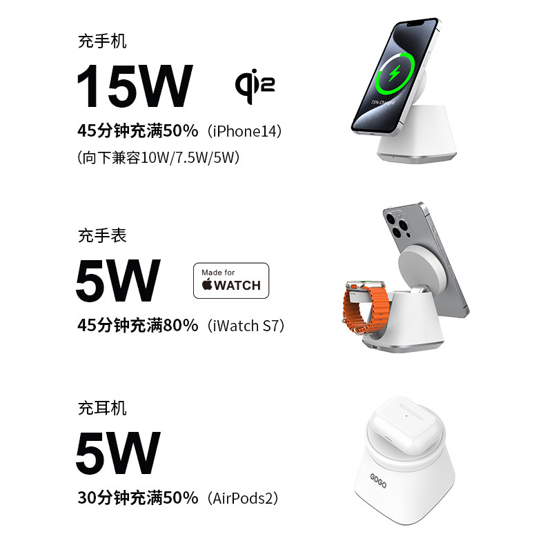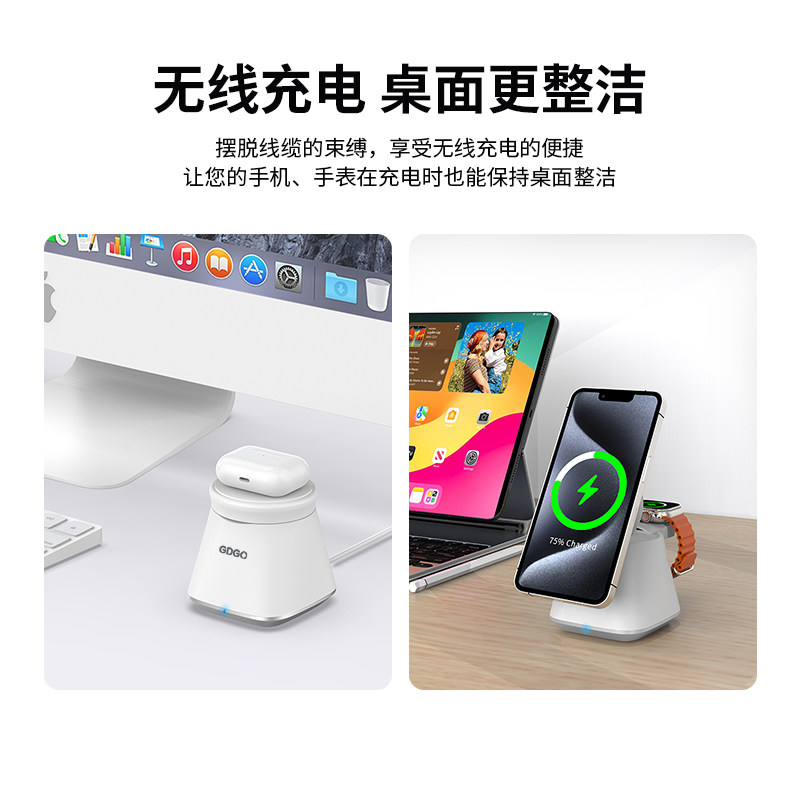 GDGO【qi2+MFi双认证】苹果二合一无线充电器MagSafe磁吸S11/Ultra快充三合一适用iphone17/Air/16手机手表