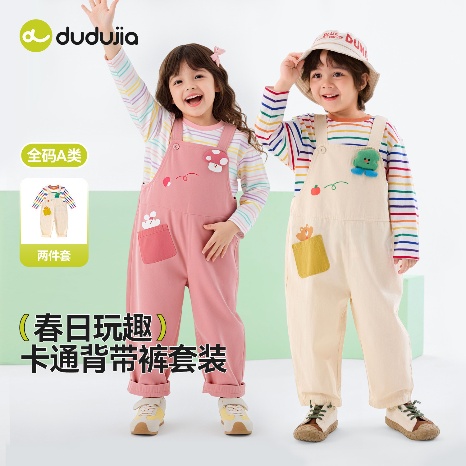 【100%棉】dudujia宝宝背带裤纯棉男童套装儿童上衣女童裤子洋气a