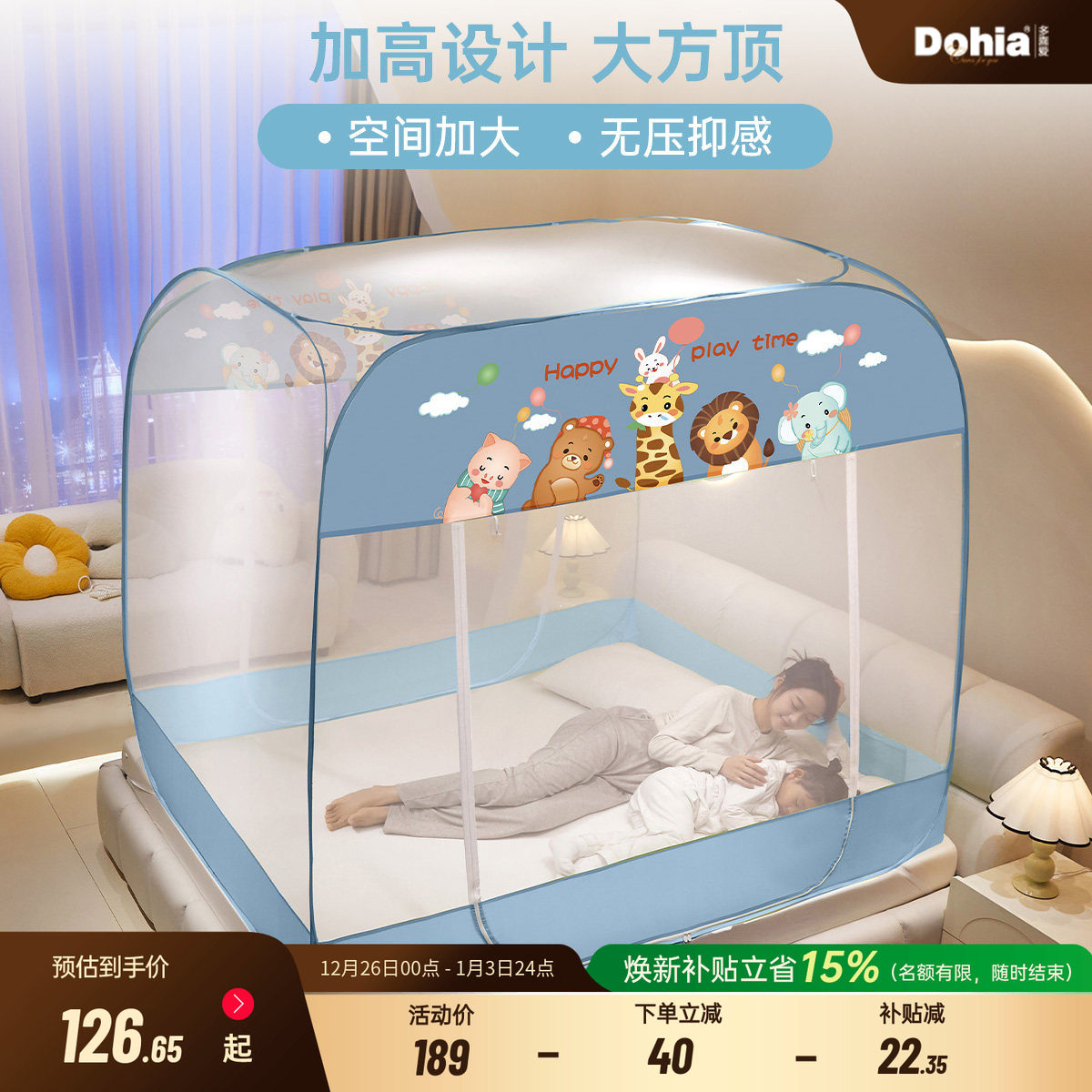 多喜爱防摔缓冲蚊帐家用卧室2025年新款儿童全底蒙古包免安装蚊帐