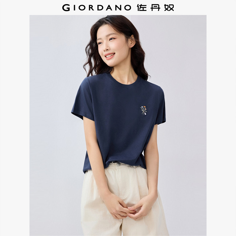 佐丹奴短袖T恤女夏季新款纯棉花朵刺绣减龄休闲圆领上衣13325325