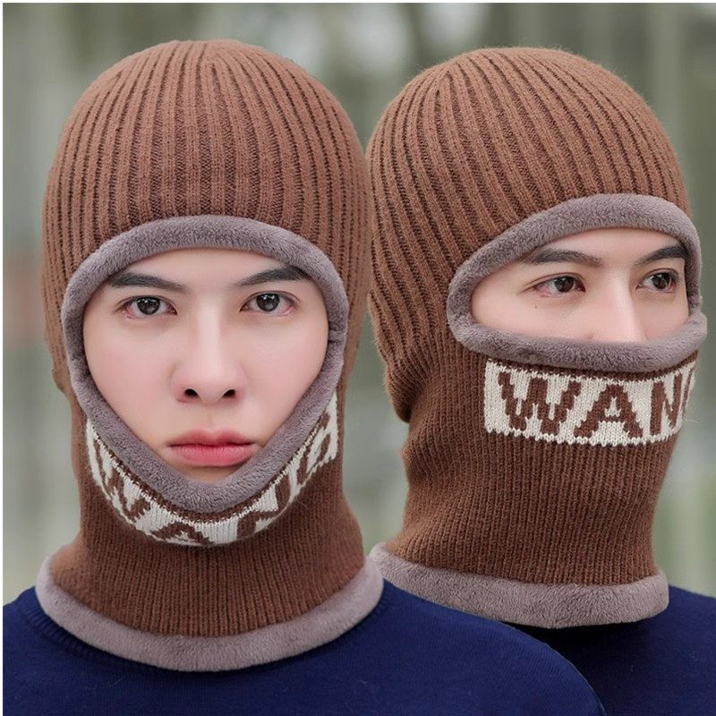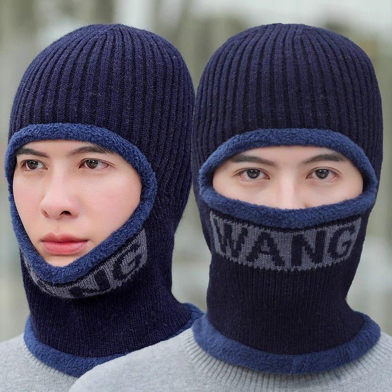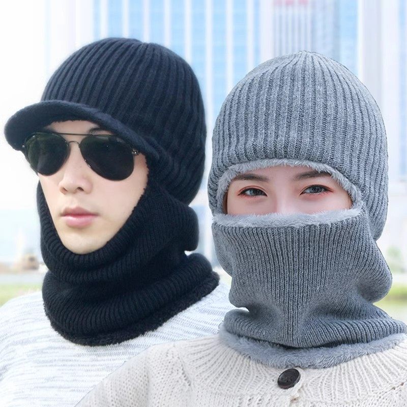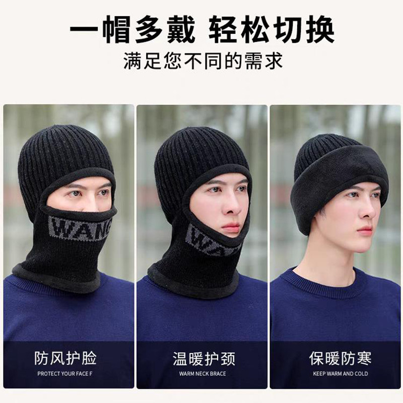 帽子男冬天加厚保暖毛线帽围脖一体棉帽冬骑车防风防寒头套针织帽
