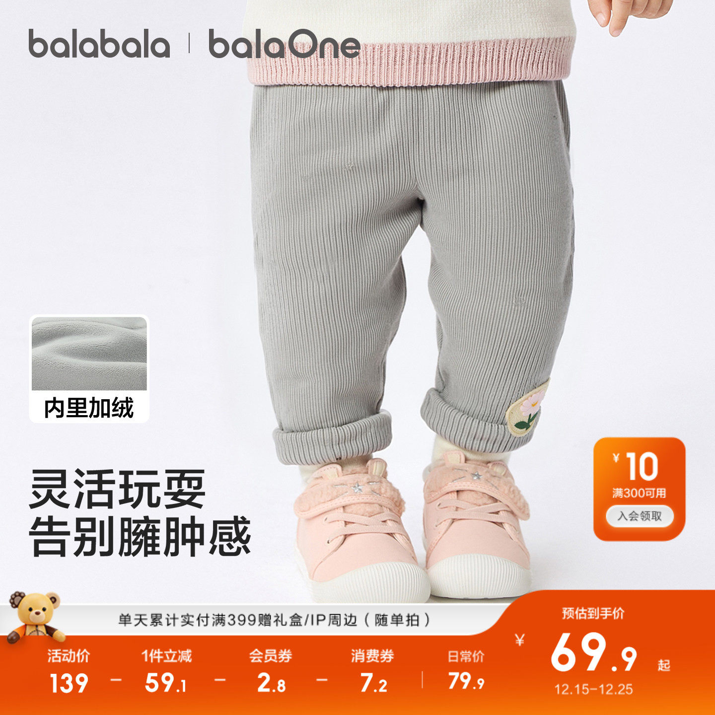 巴拉巴拉婴儿长裤加绒打底裤女童宝宝裤子秋冬装保暖2025新款百搭