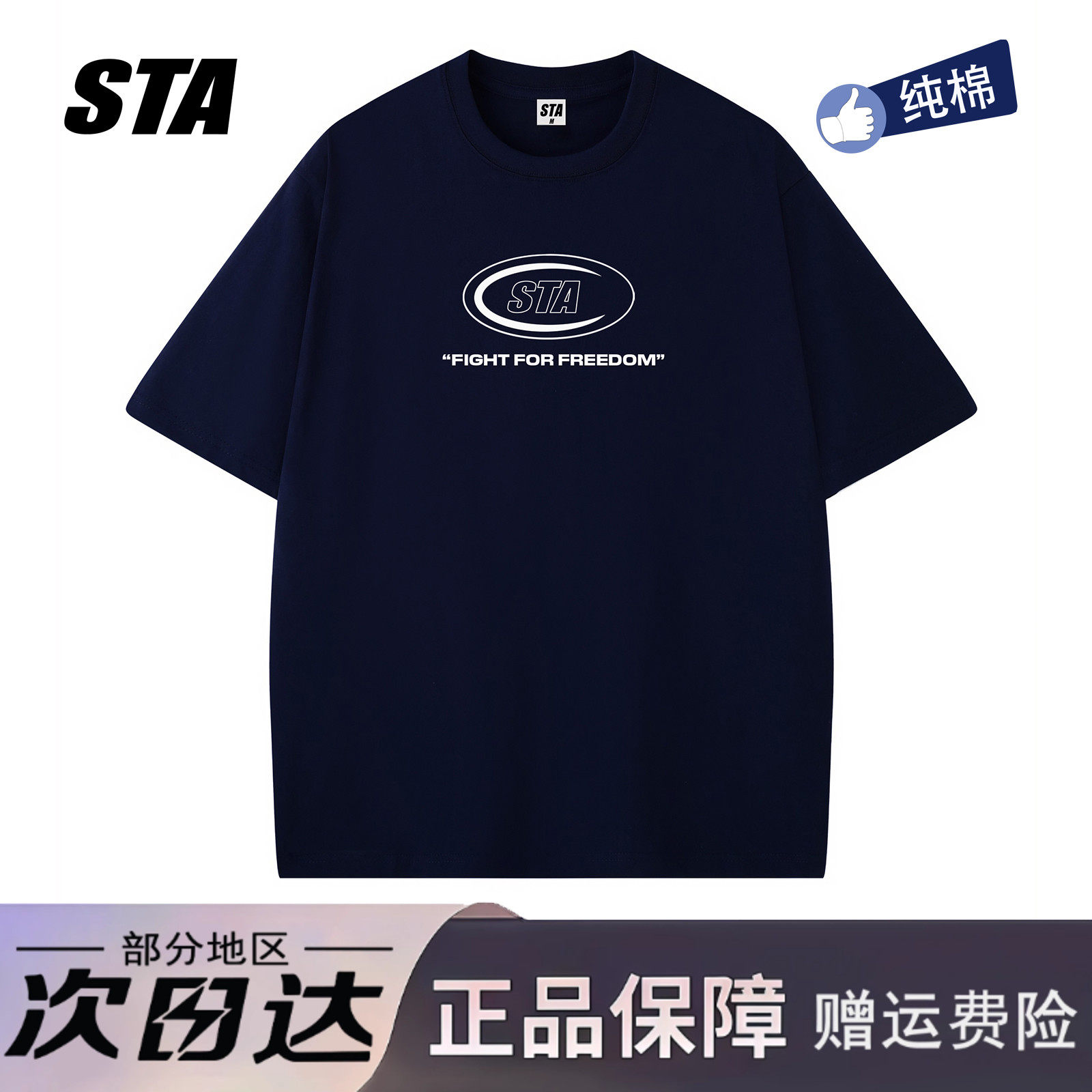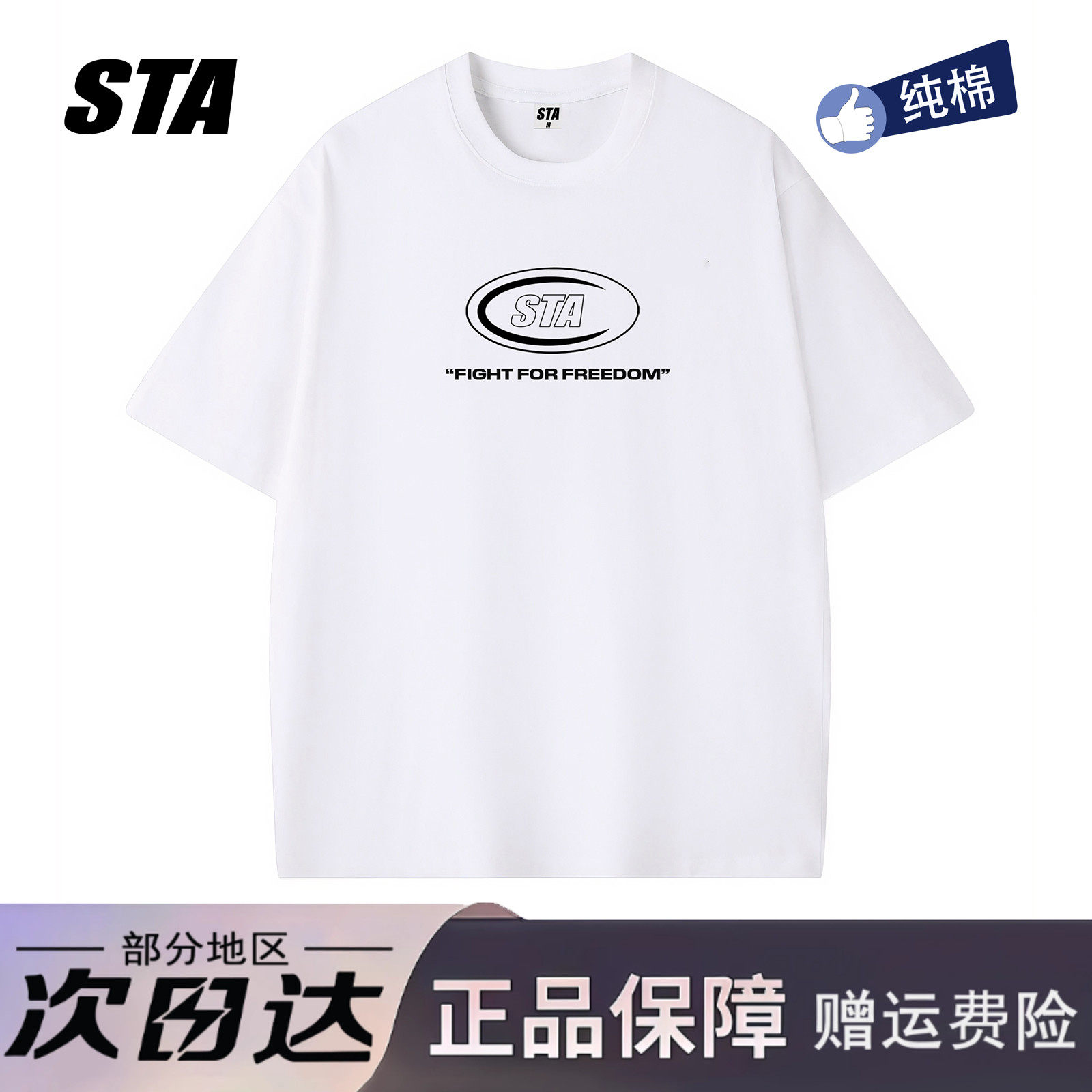 STA旗舰店字母印花短袖男女夏季美式潮牌重磅纯棉宽松休闲黑色T恤