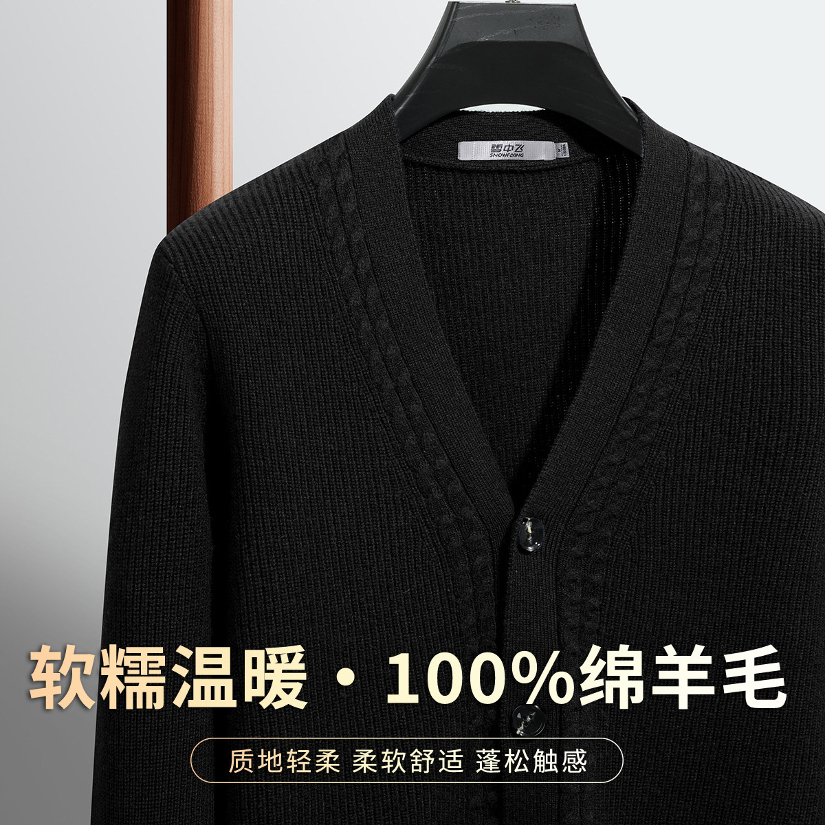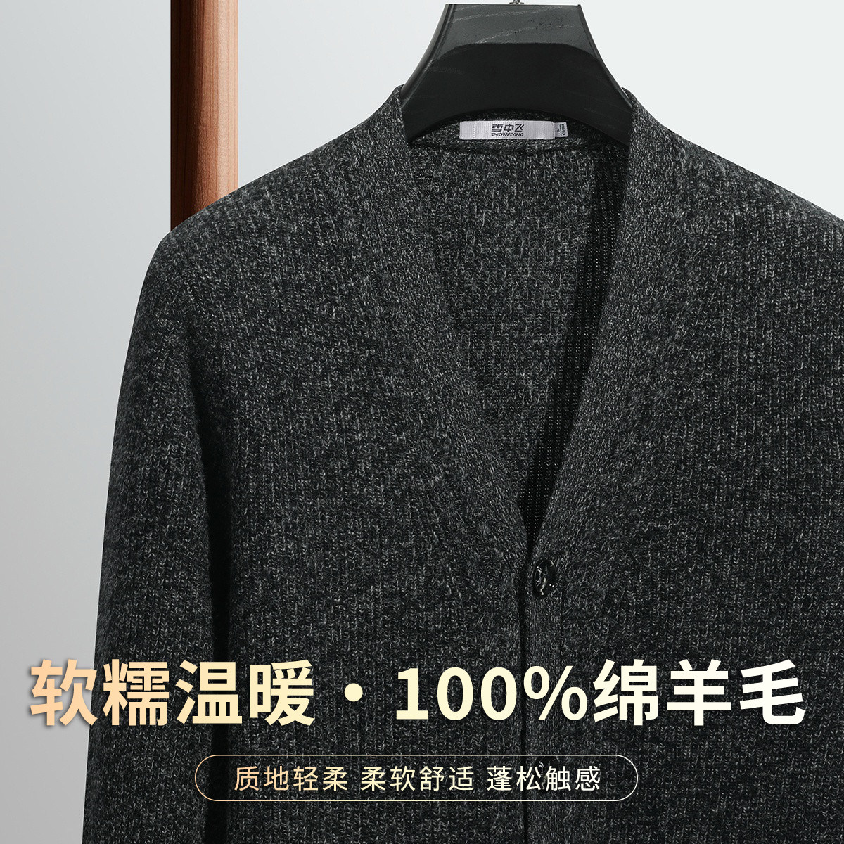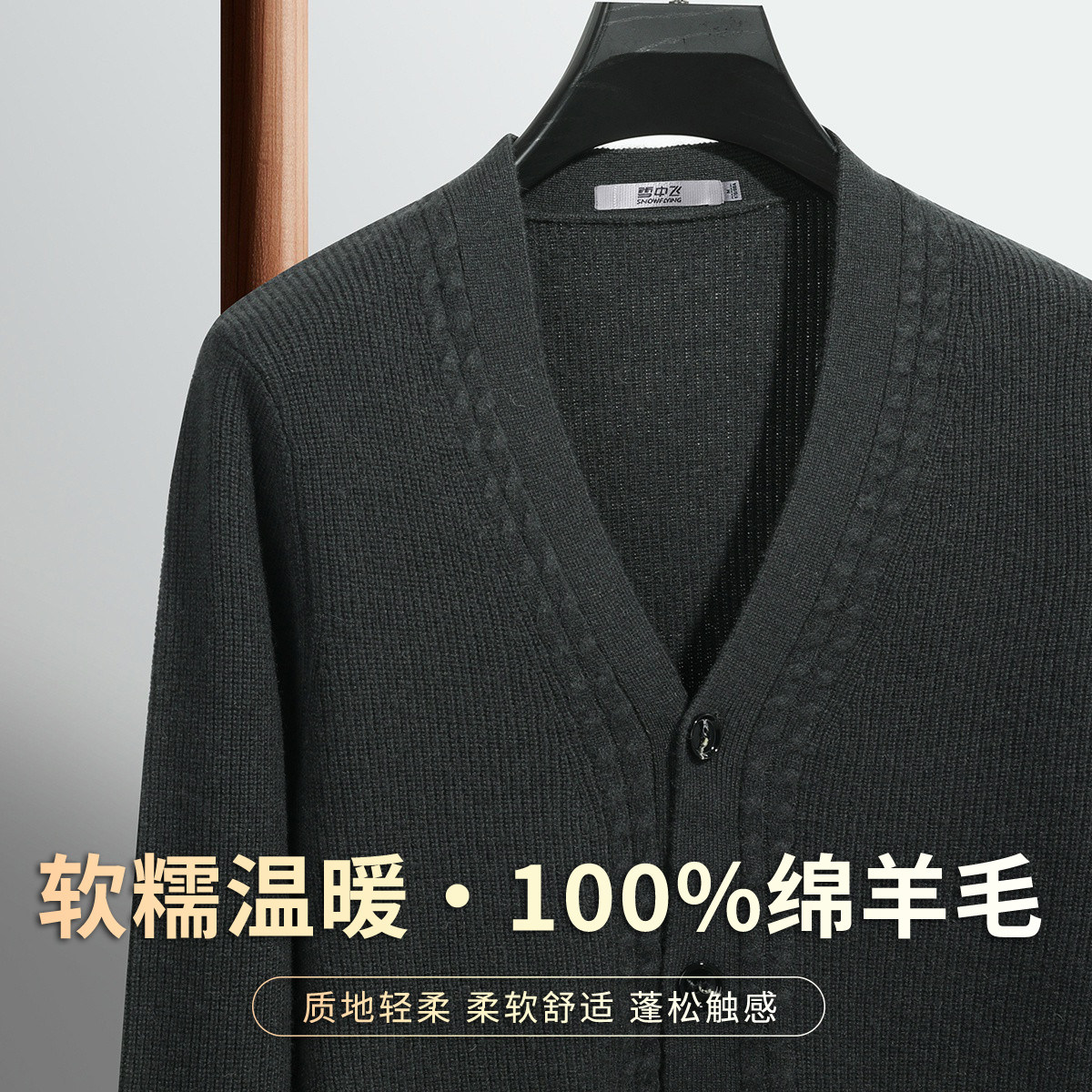 雪中飞【100%绵羊毛加厚V领开衫】春季款舒适温暖外套男式羊毛衫W