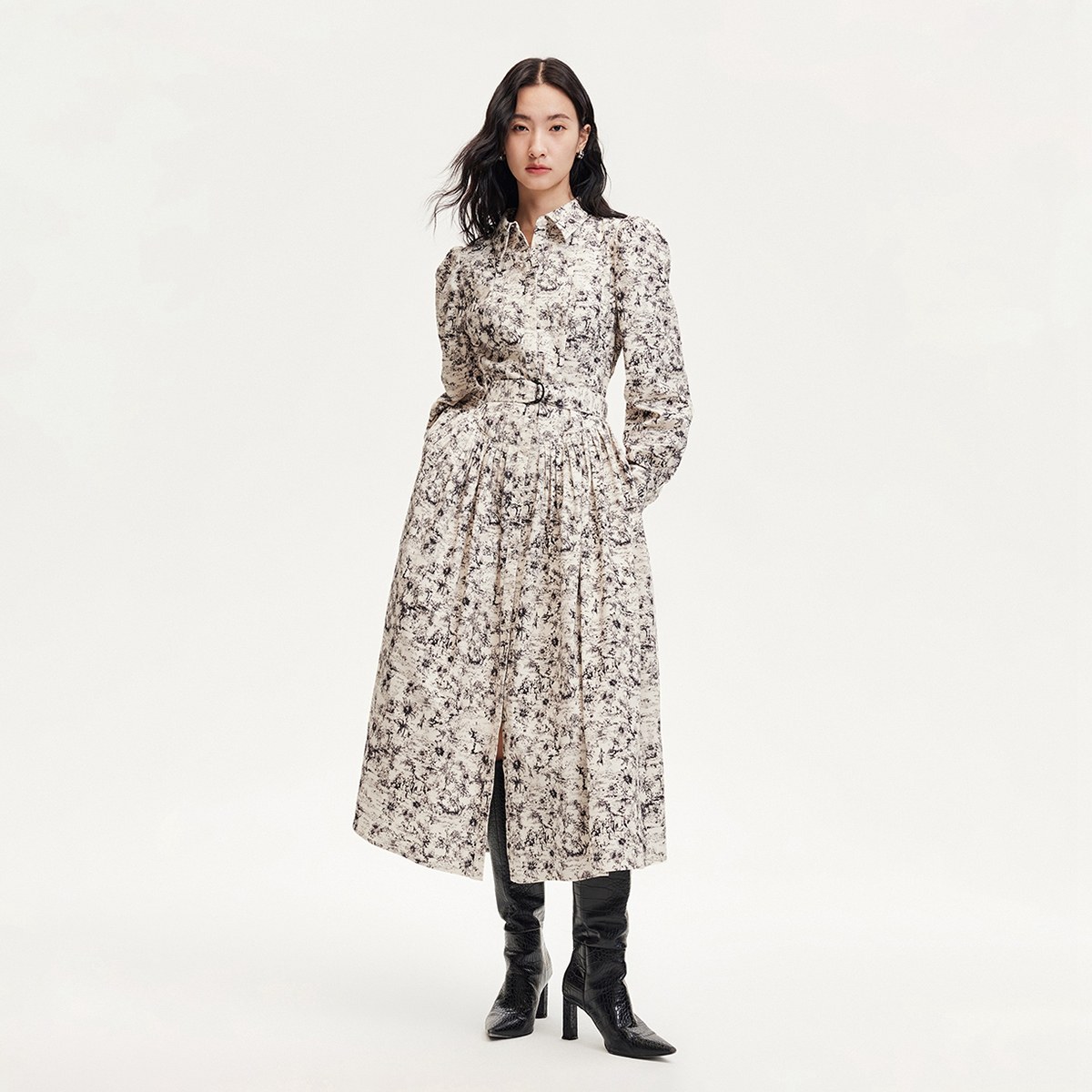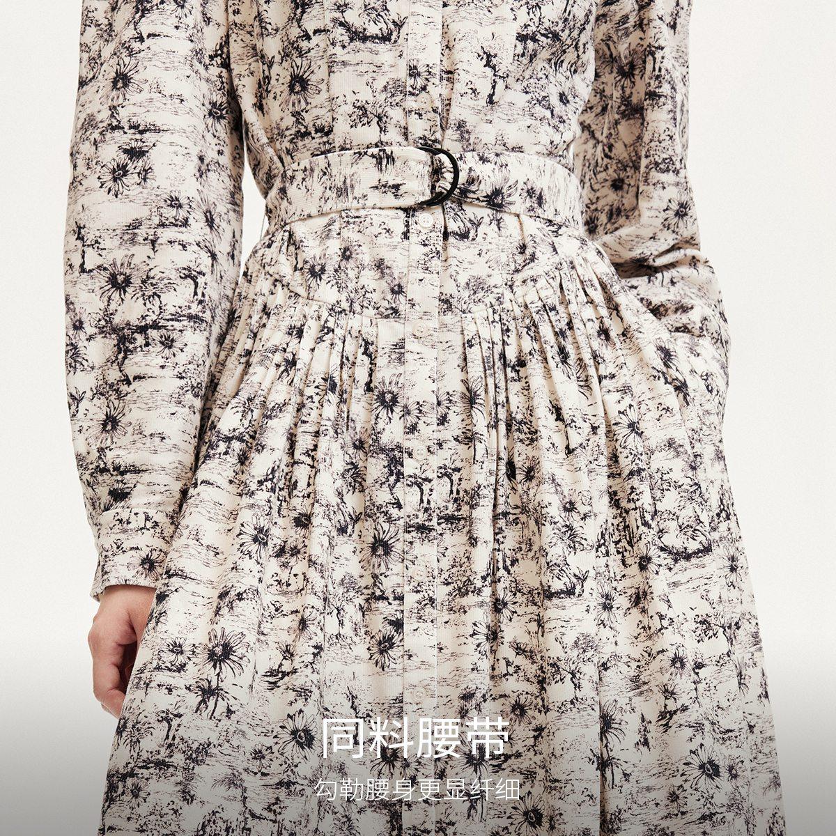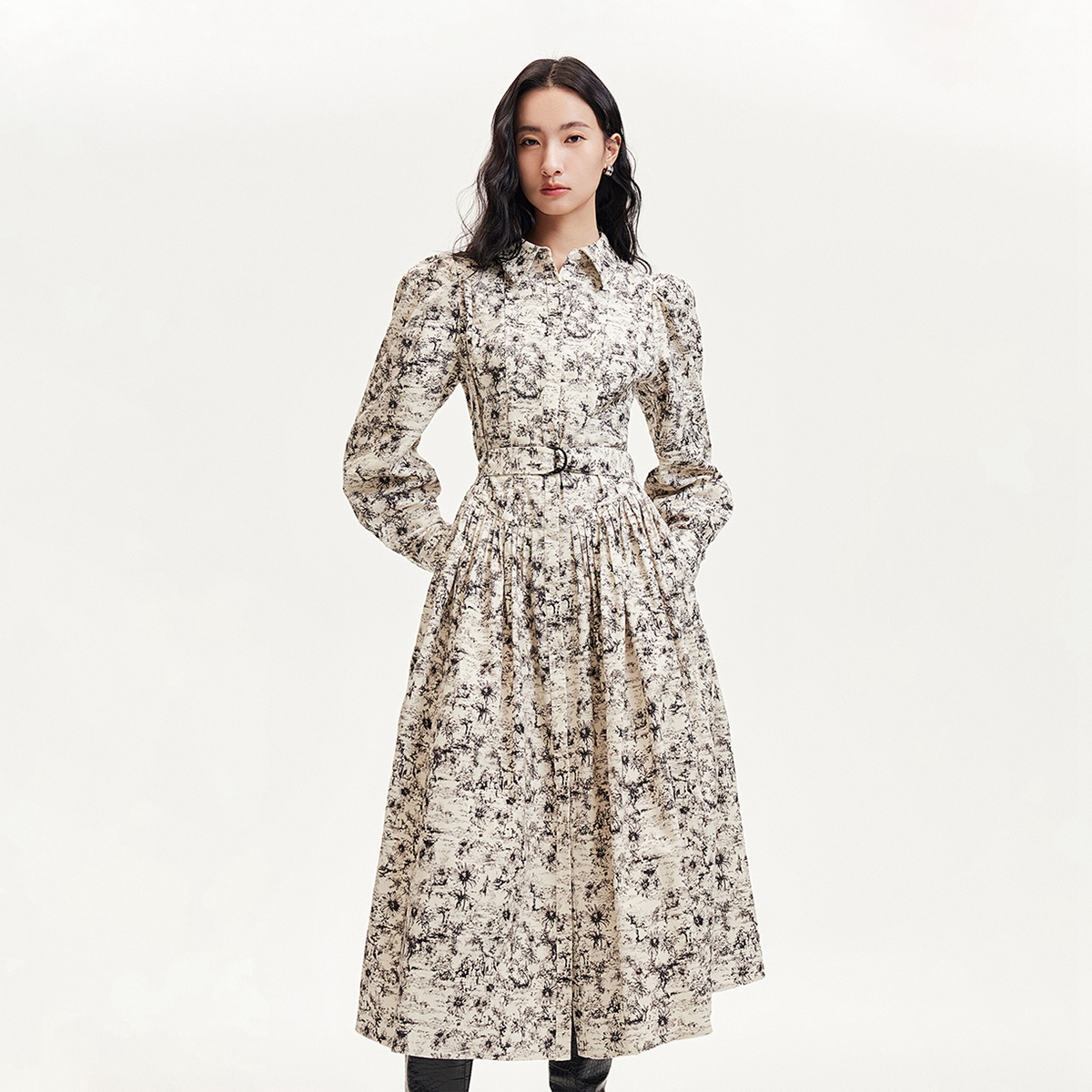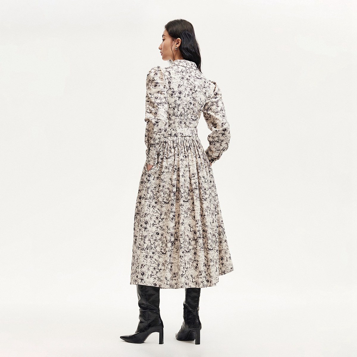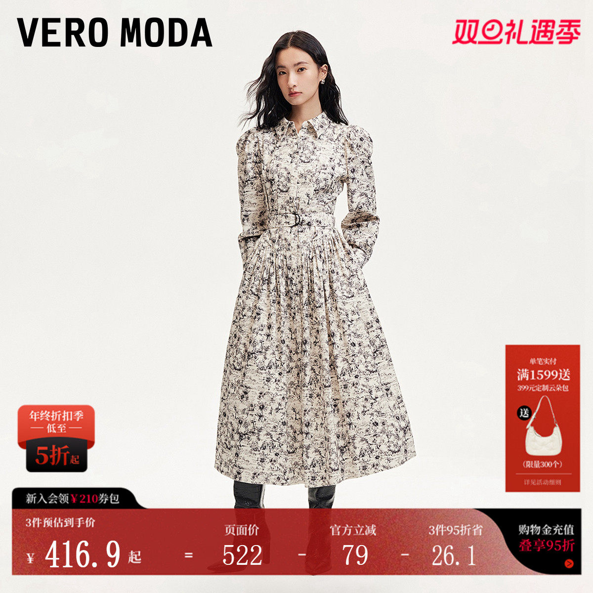 Vero Moda连衣裙秋冬满印泡泡袖长款连衣裙收腰古典32447D002