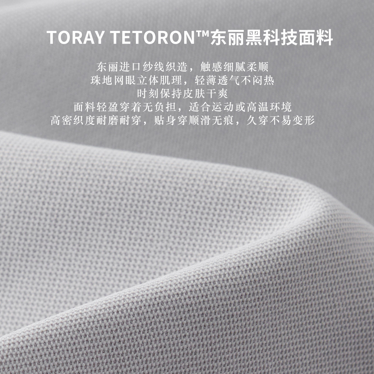 东丽进口纱线织造,具有吸湿速干排汗功能。