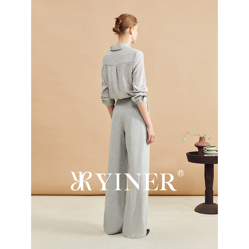 【刘涛同款】YINER音儿冬季羊毛风琴褶阔腿休闲裤
