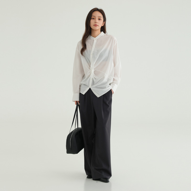 黑标BAIZHUO商场同款25秋新款解构扭结桑蚕丝长袖衬衫AZ53XS022