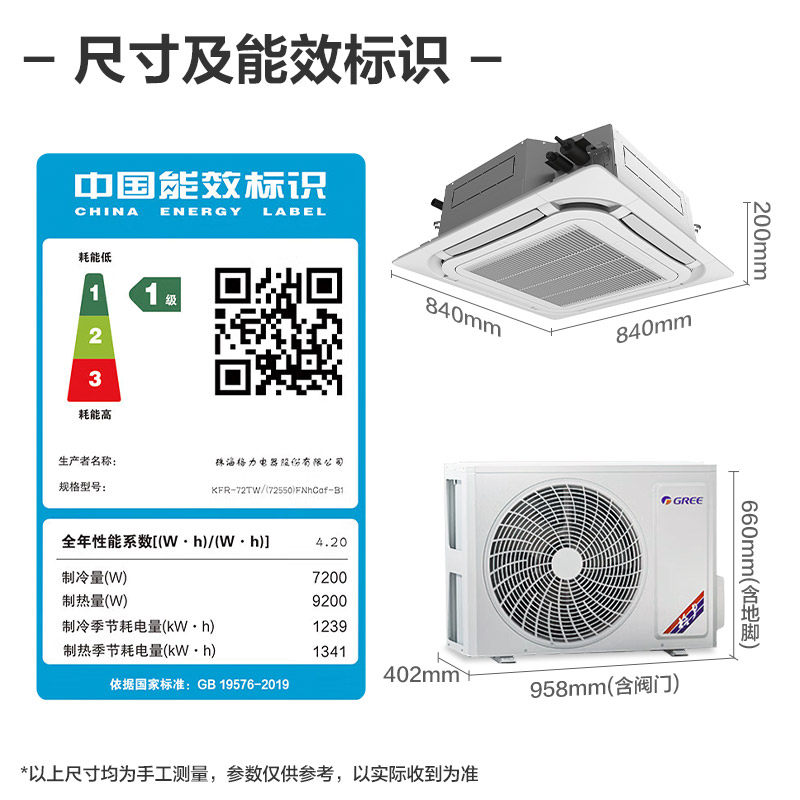 GREE格力中央空调天花机变频冷暖商用办公室嵌入式吸顶天井机3匹