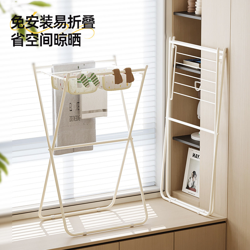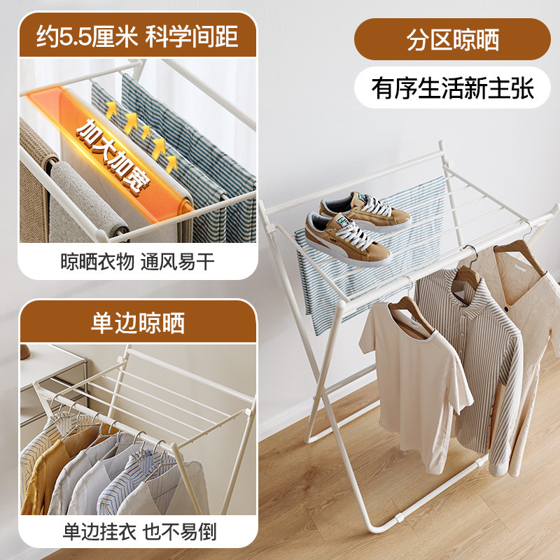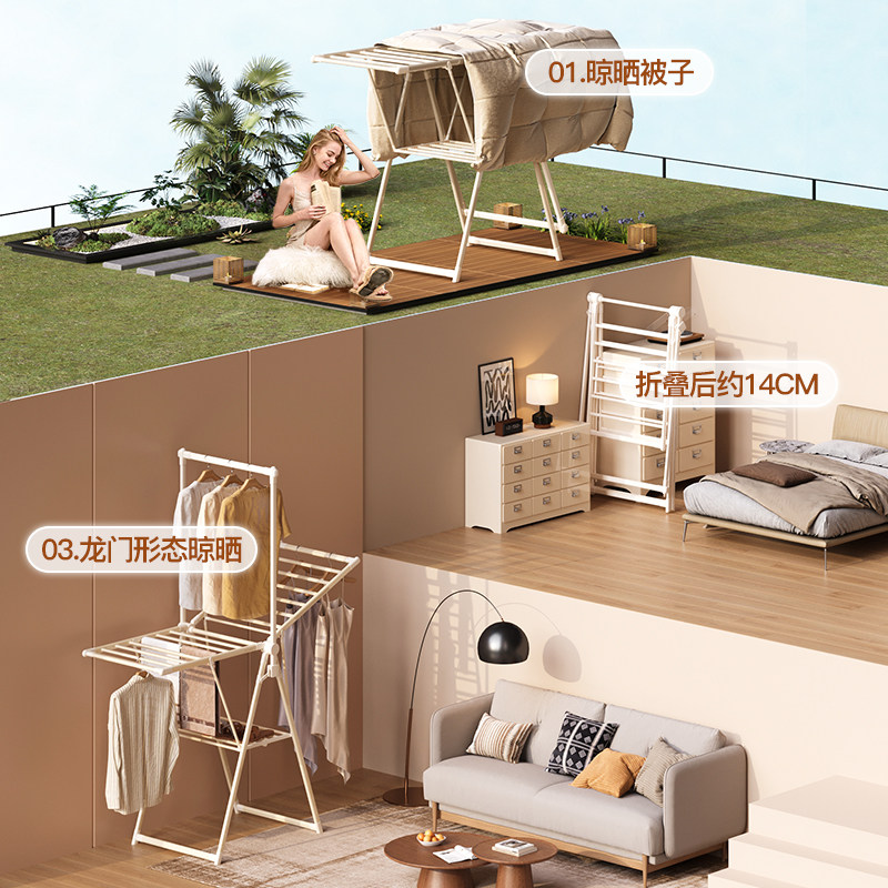【国补】佳帮手奶油折叠晾衣架室内阳台家用凉衣服落地晒被子神器