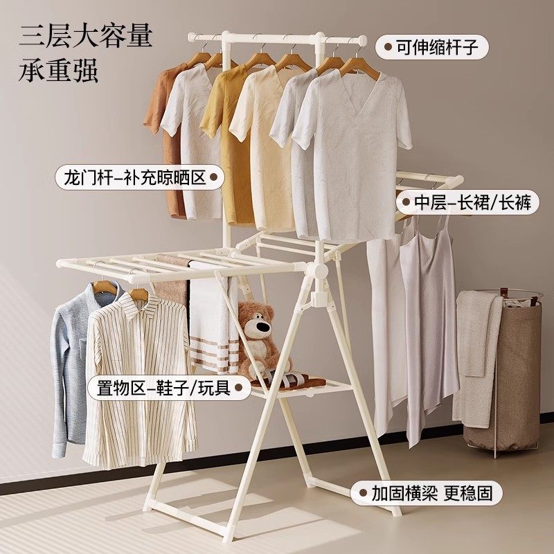 晾衣架落地家用卧室挂衣架宿舍室内双杆双层晒衣服架子简易凉衣杆