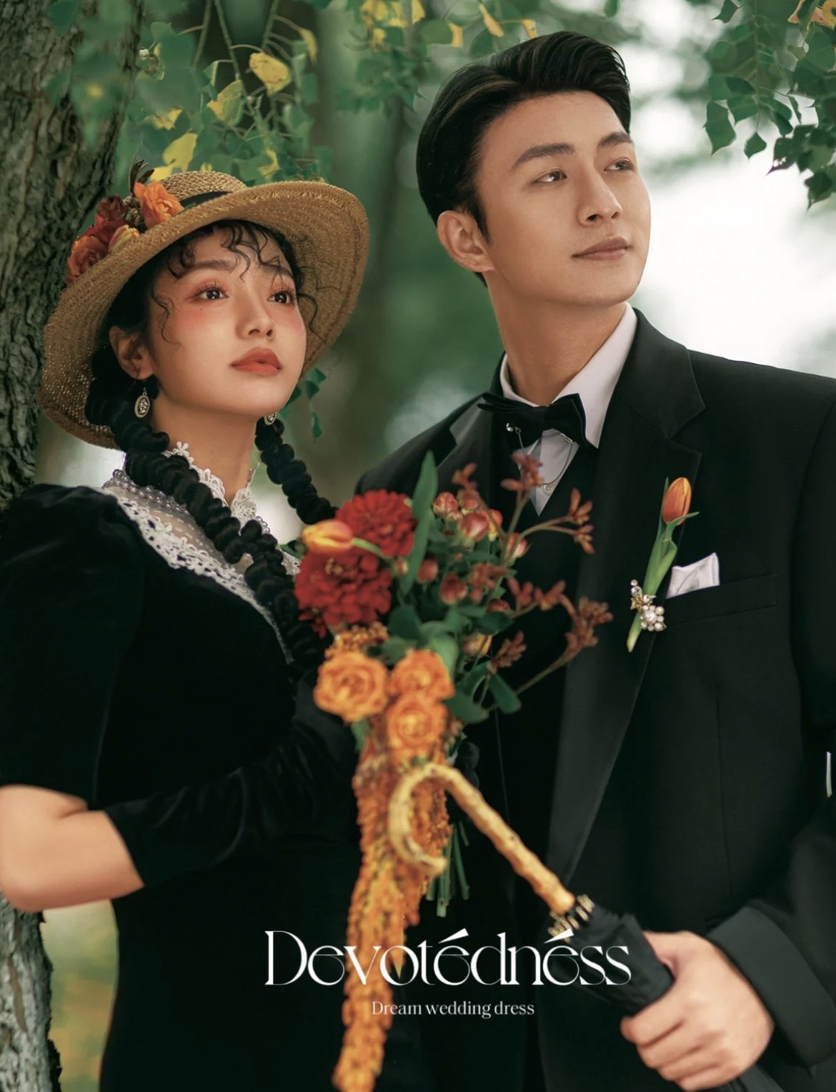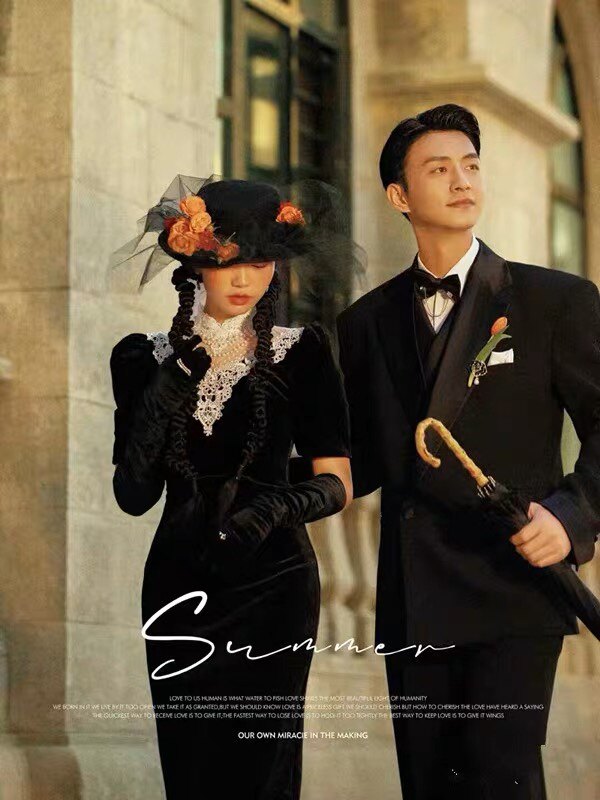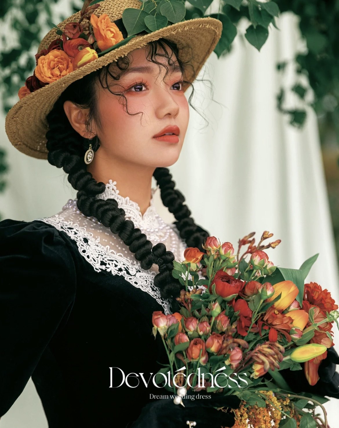 赫本风粘花草帽法式油画电影感婚纱照摄影复古帽子外景拍照大提琴