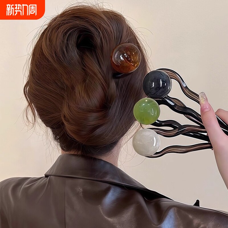 复古u型发簪女高级感后脑勺丸子头盘发神器简约气质发钗簪子头饰