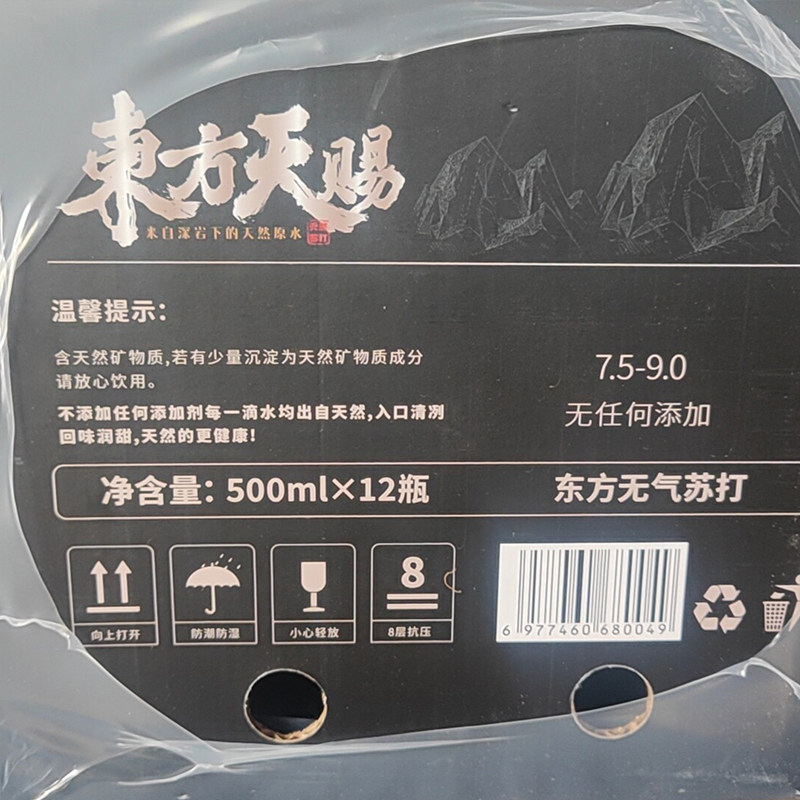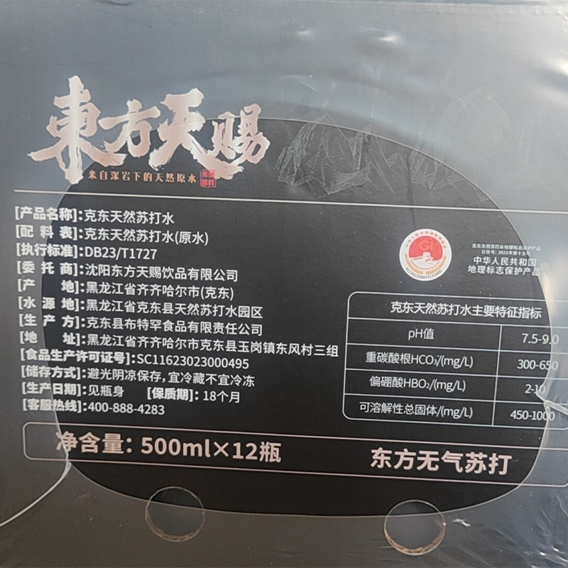 东方天赐克东天然苏打水500ML*12瓶整箱小分子碱性水非矿泉水饮用
