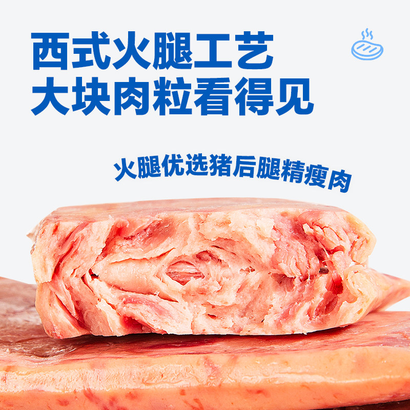 小猪呵呵火腿午餐肉罐头高蛋白猪肉90%螺蛳粉泡面三明治火锅即食