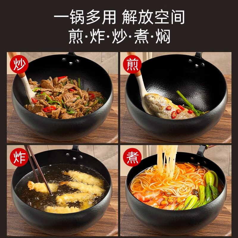 炊大皇铁锅家用无涂层不锈炒锅燃气灶专用炒锅炒菜锅平底锅极铁锅