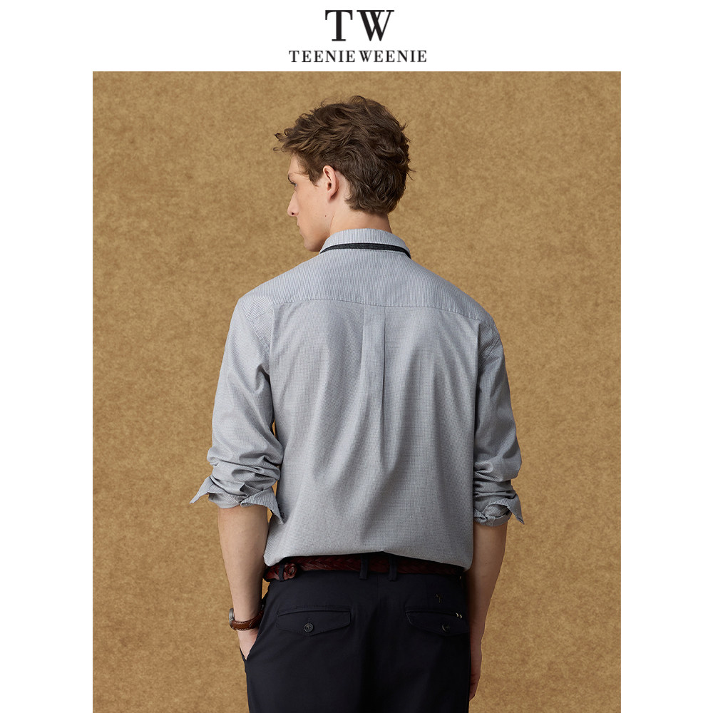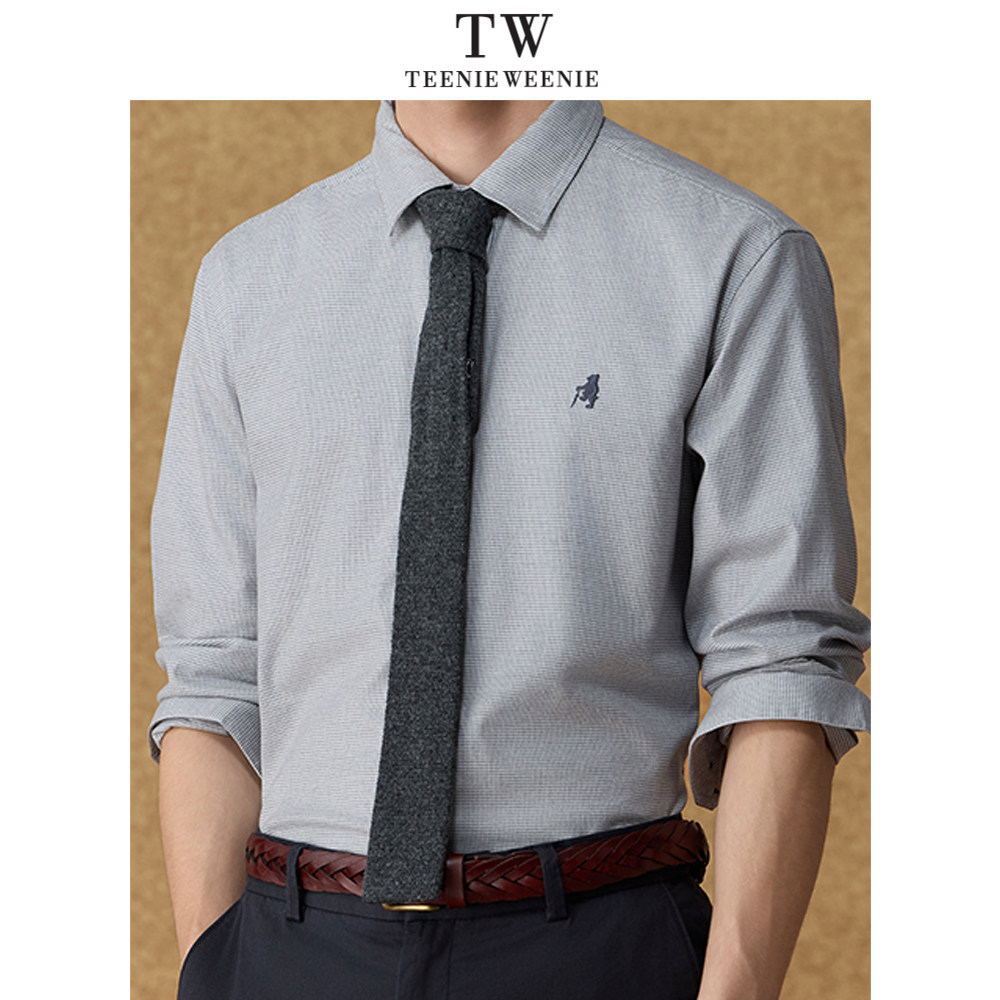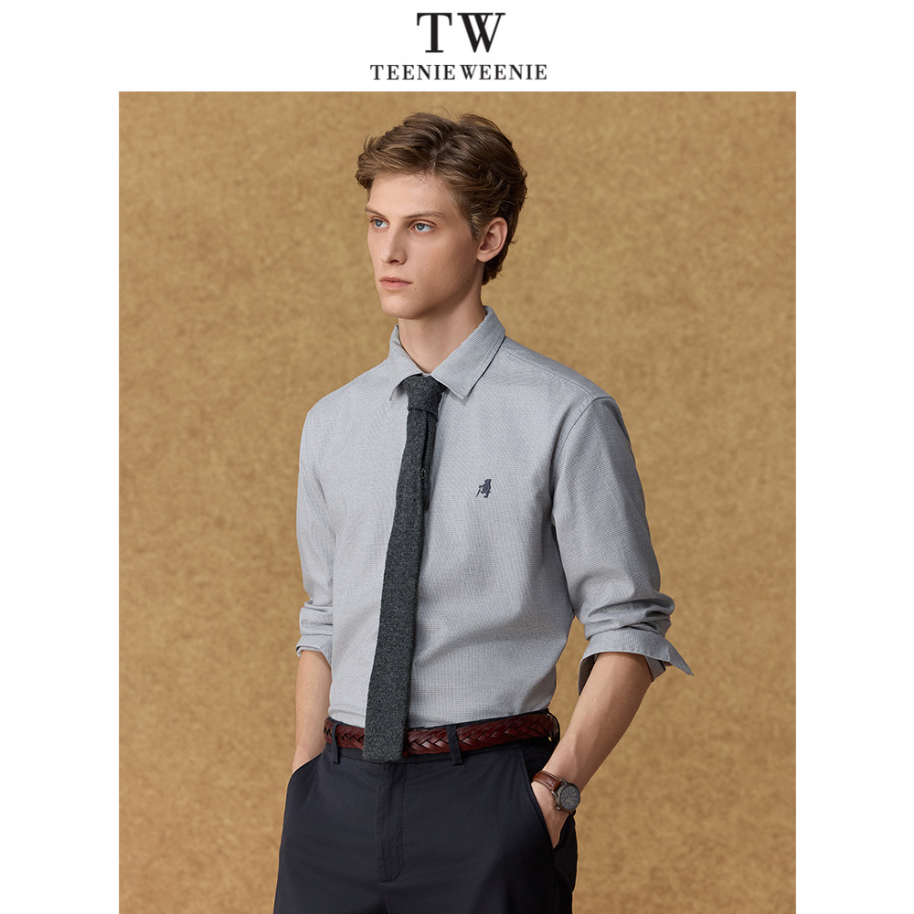 Teenie Weenie小熊男装简约通勤舒适千鸟格羊毛衬衫