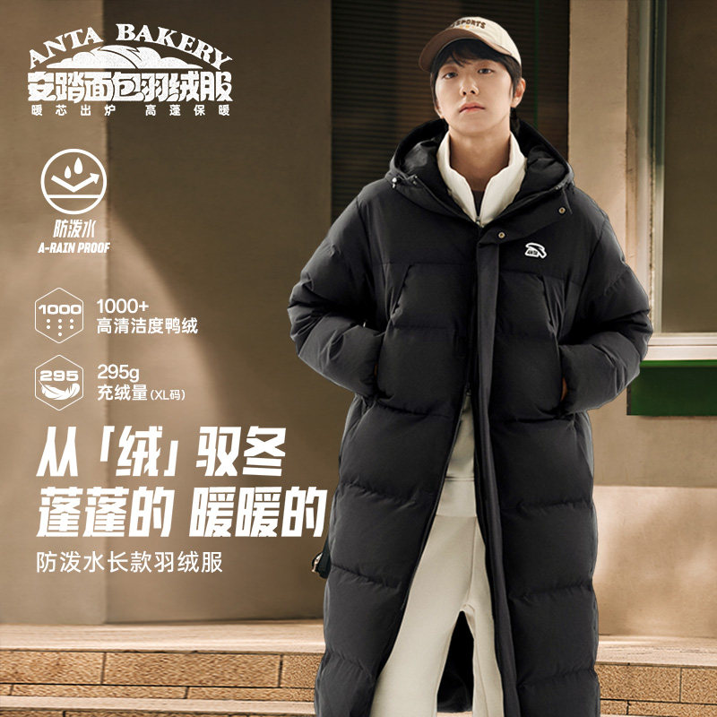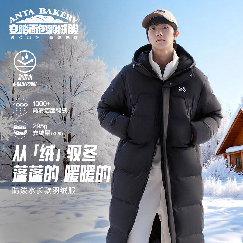 安踏防泼水速暖羽绒丨男款四防中长款羽绒服男春夏季保暖运动外套