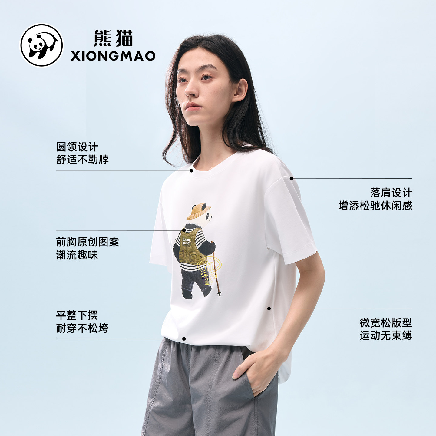 熊猫户外宽松休闲裤2026新款锥形裤/凉感速干T恤/原纱遮热T恤