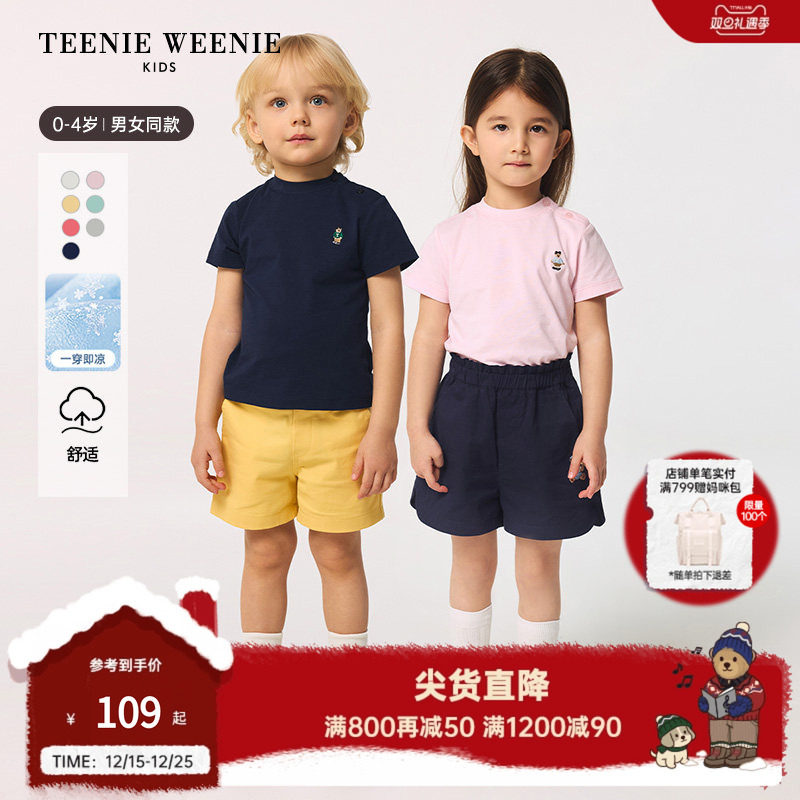 TeenieWeenie Kids小熊童装25年款男女宝纯棉刺绣短袖T恤衫打底衫