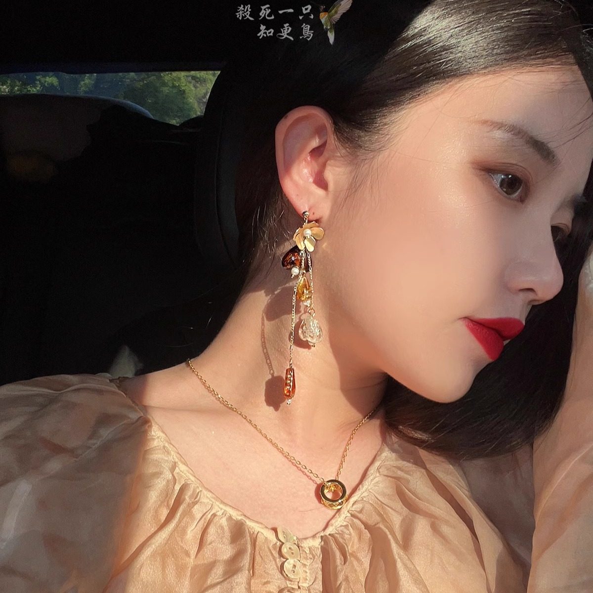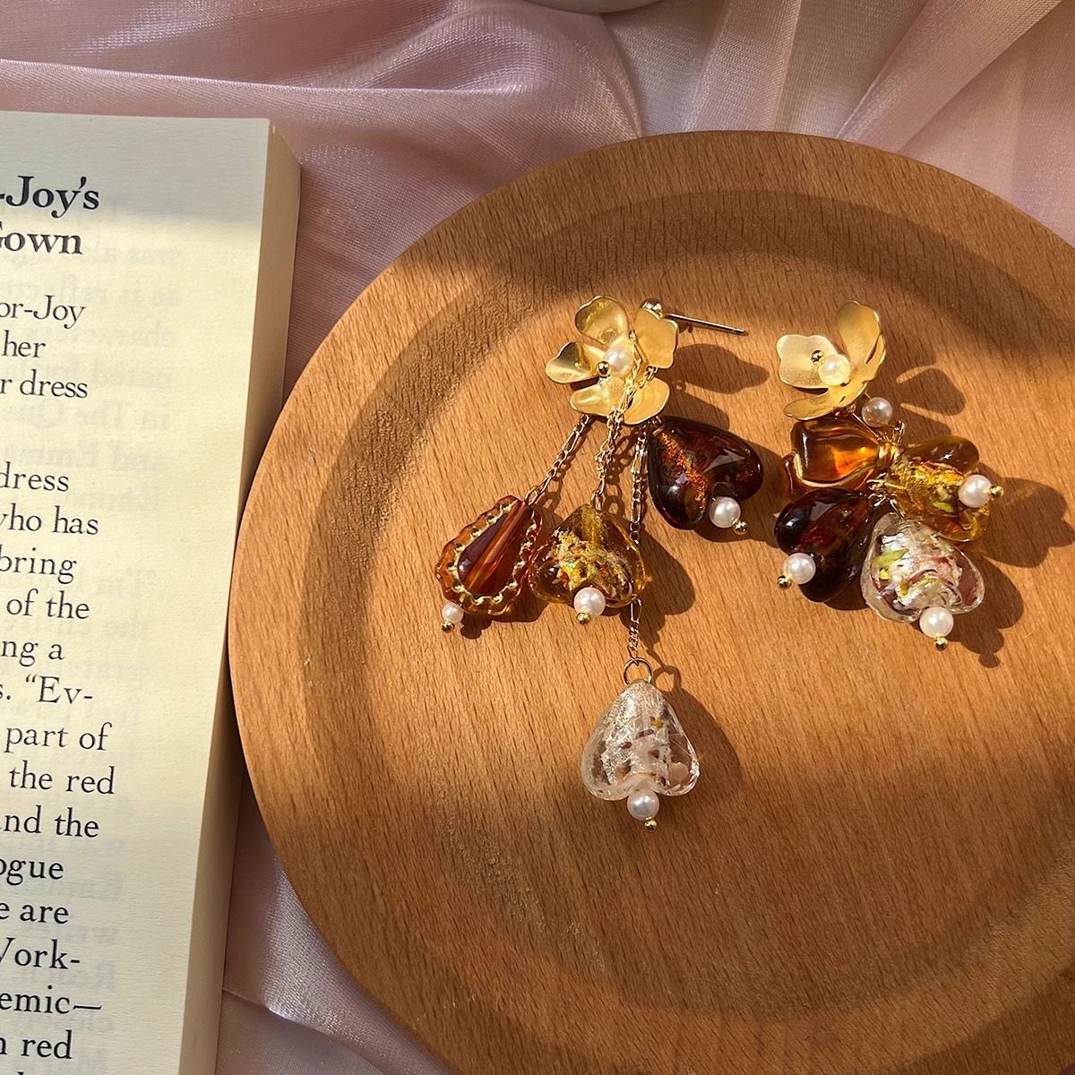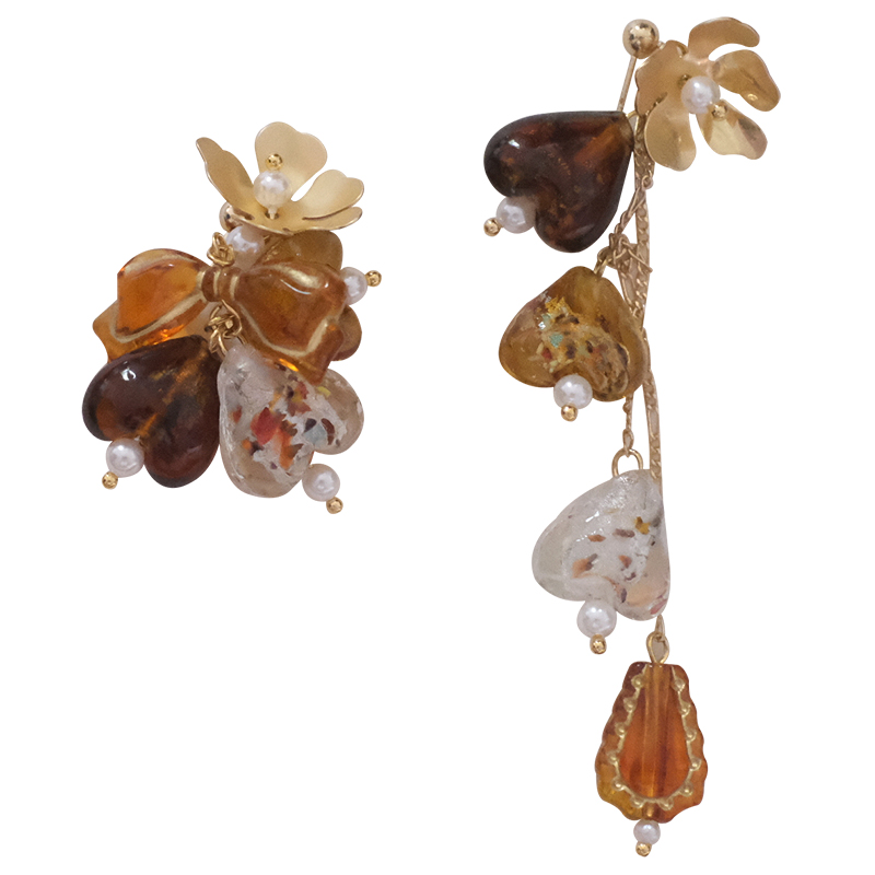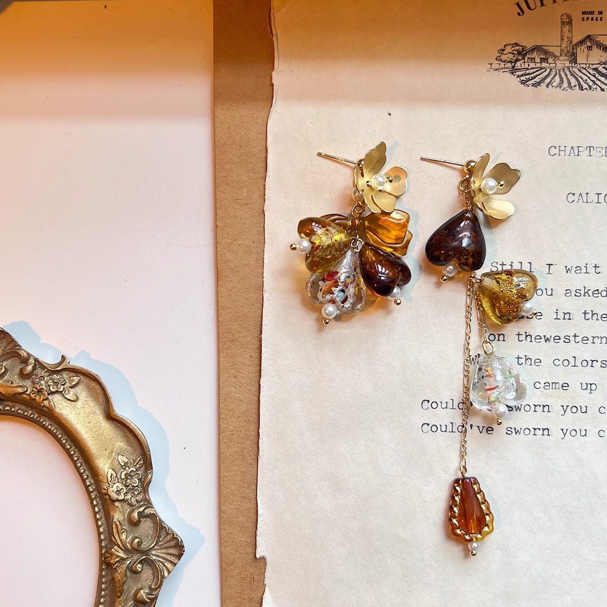 知更鸟|落日琥珀 原创复古油画艺术琉璃小众设计新中式耳环耳夹