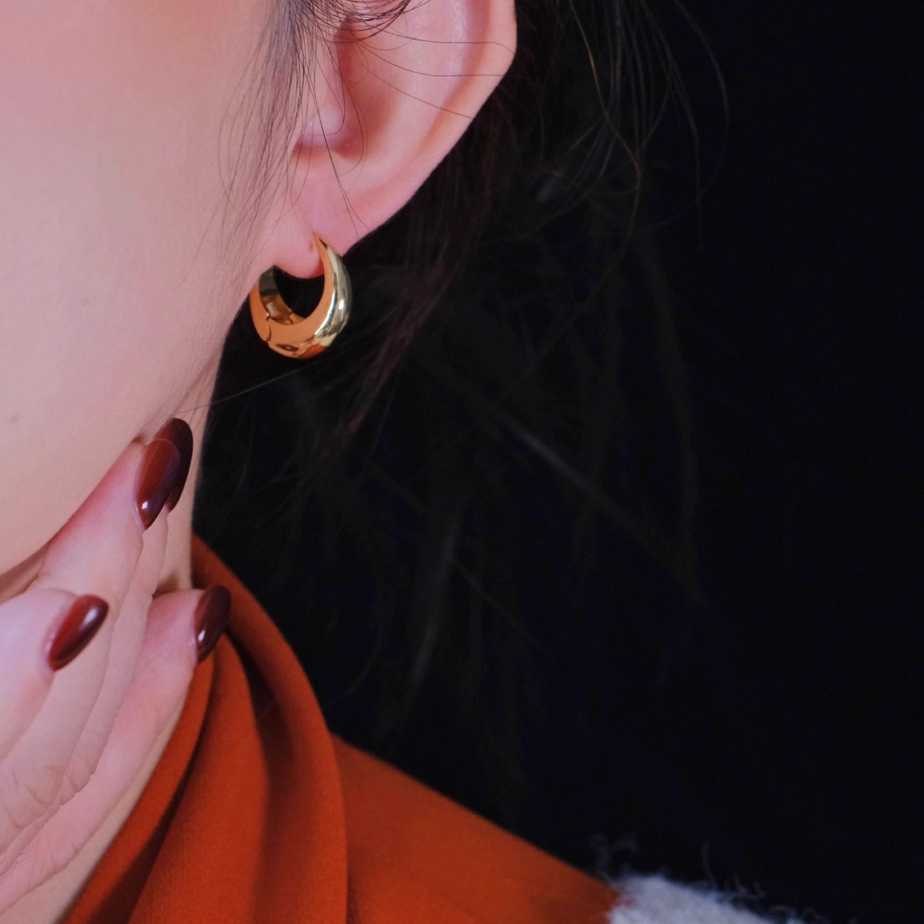 《波尔卡舞曲》极简时髦亮面金属耳扣冷淡风几何耳圈耳饰耳夹耳环