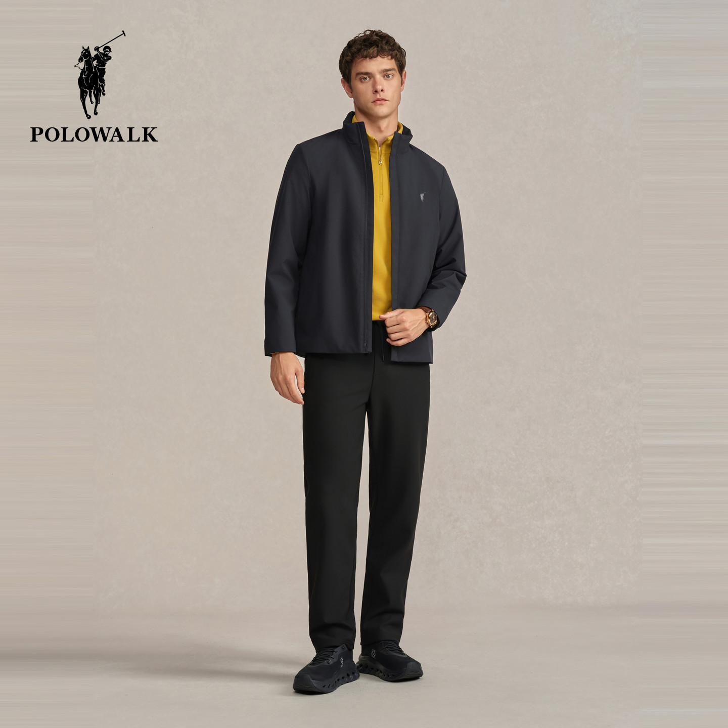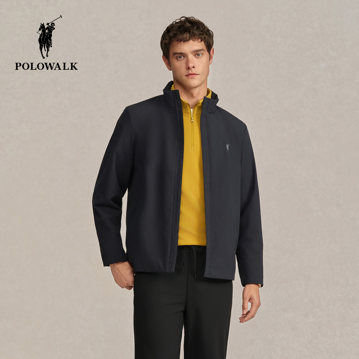 POLOWALK男式夹克2025秋季新品商务百搭立领加绒保暖外套