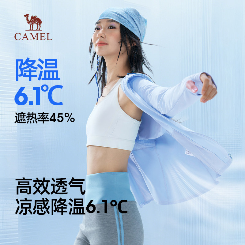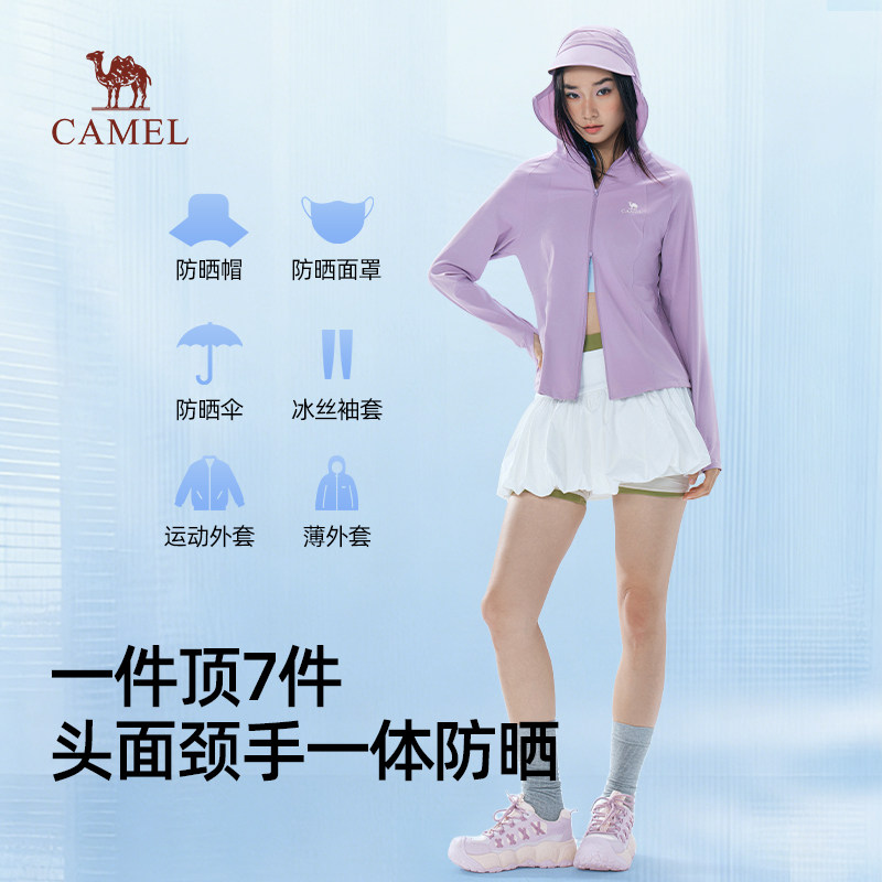 骆驼骑行防晒衣女装2026春季新款户外运动防紫外线透气连帽皮肤衣