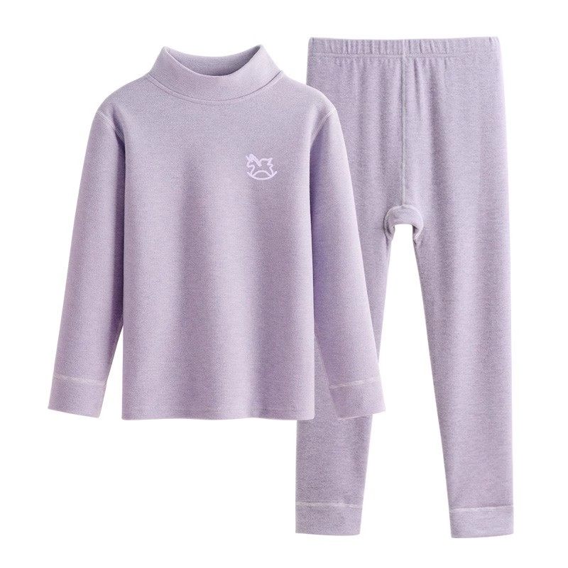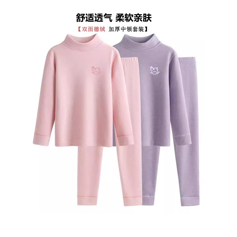双面德绒女童秋衣秋裤无骨磨毛打底儿童保暖套装女大童冬季半高领