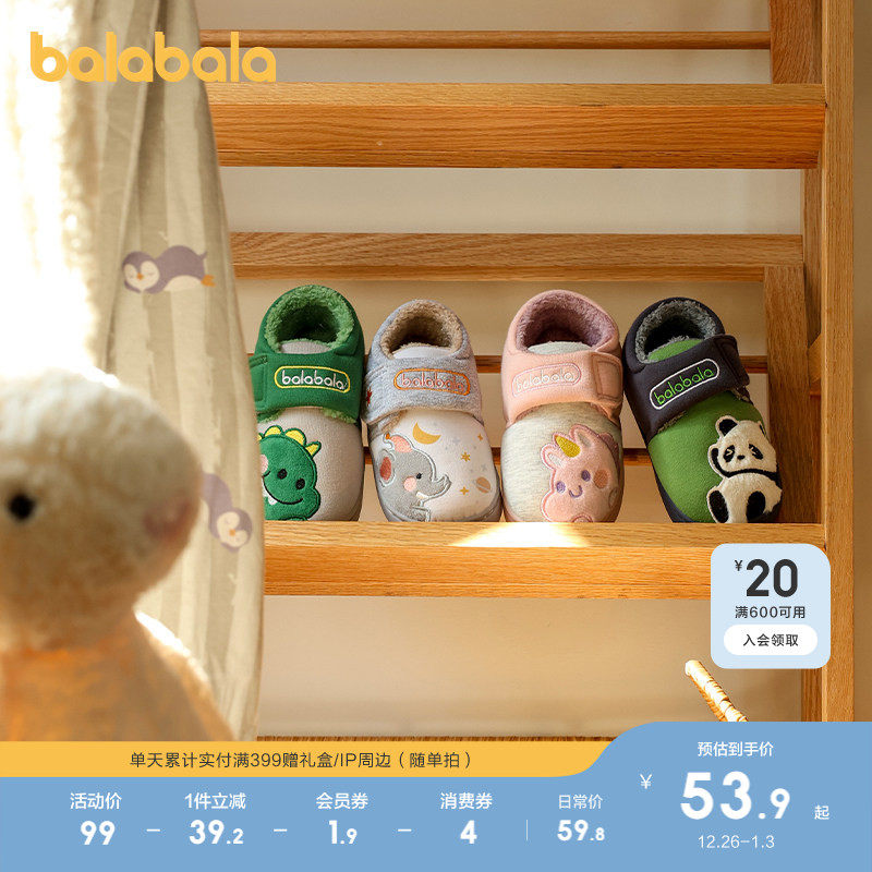 巴拉巴拉童鞋儿童秋冬棉拖鞋包跟家居外穿鞋加绒魔术贴设计感软底
