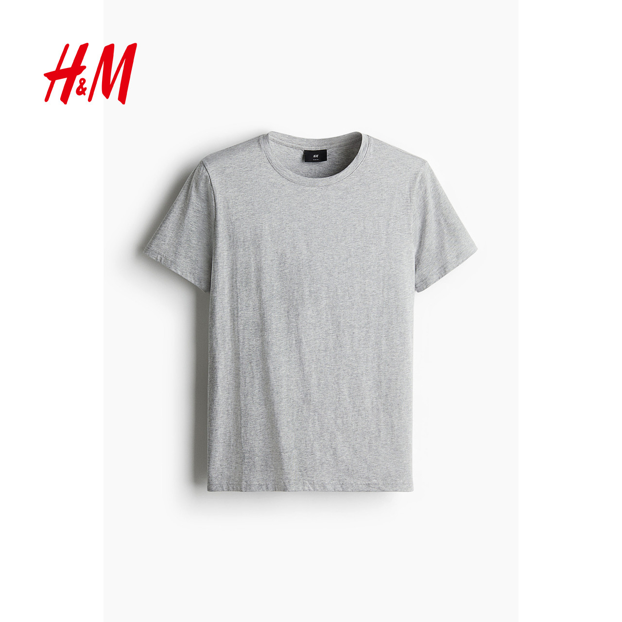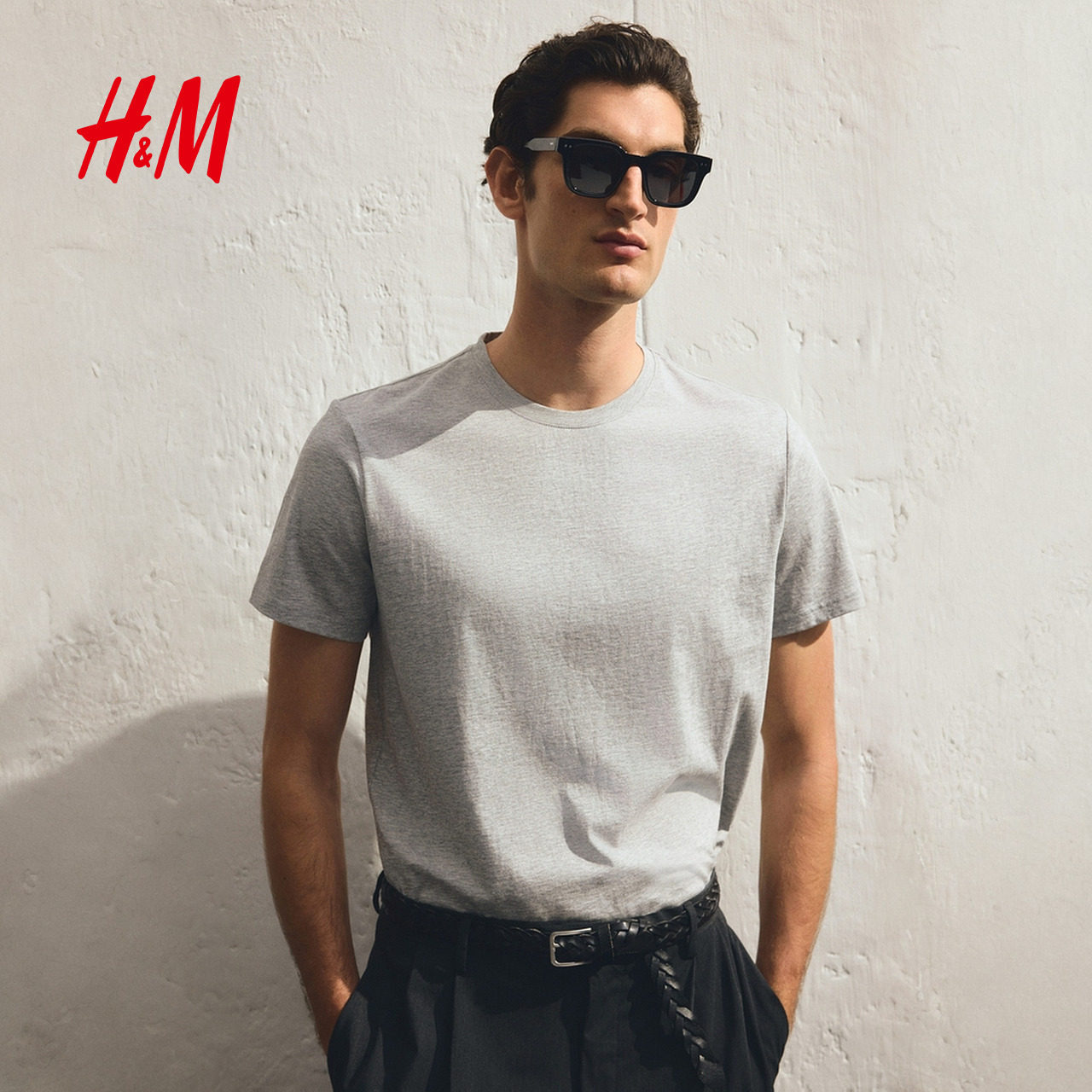 HM男装女装T恤2025冬季正肩匹马棉细密罗纹圆领短打底衫1101074