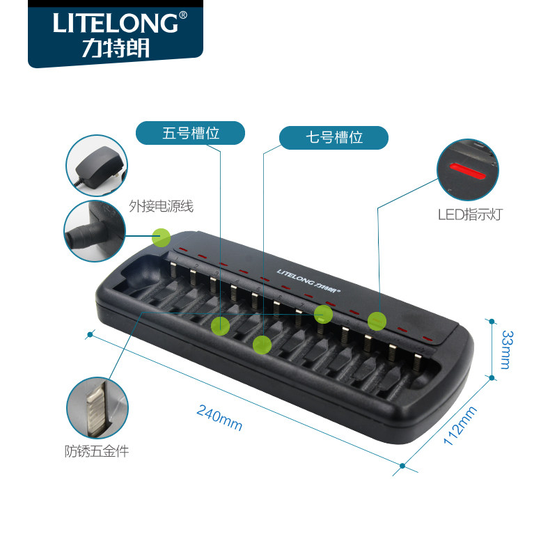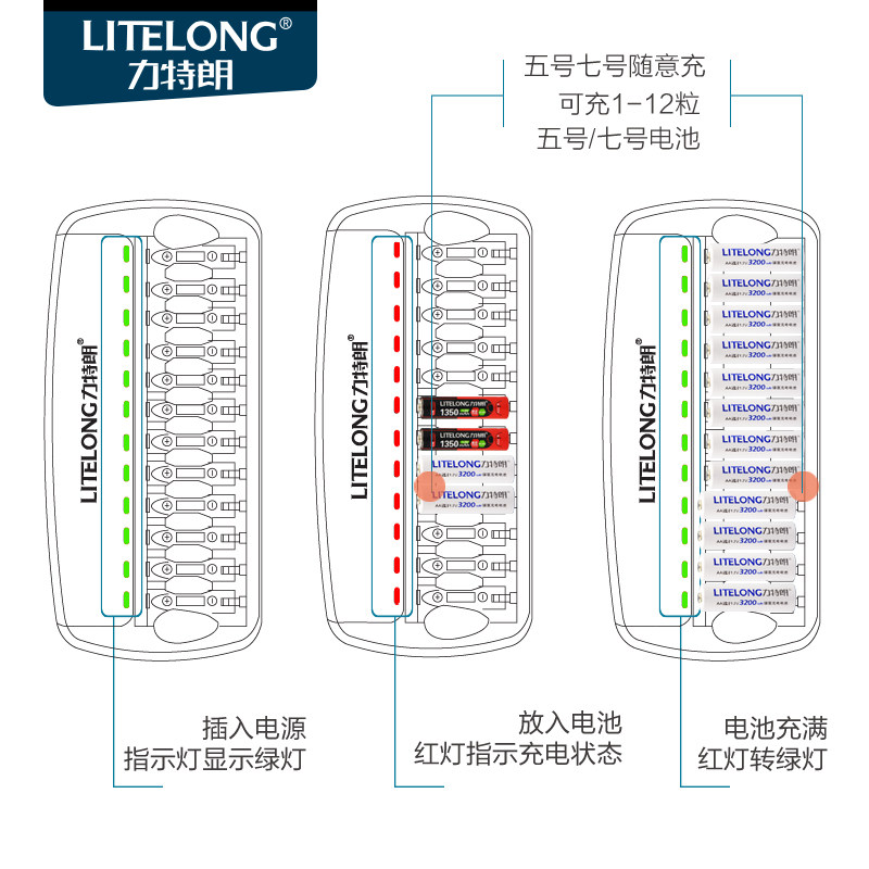 力特朗电池充电器套装12槽极速5号7号通用