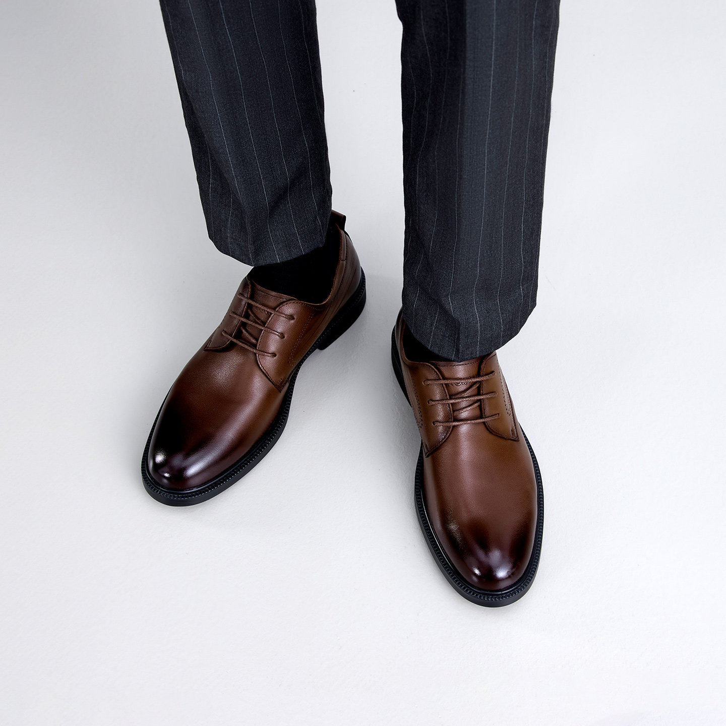骆驼2025冬季舒适休闲加绒皮鞋男结婚新郎正装商务真皮增高德比鞋