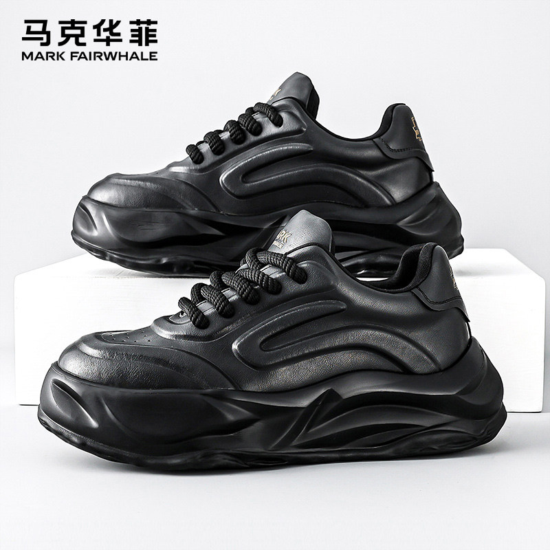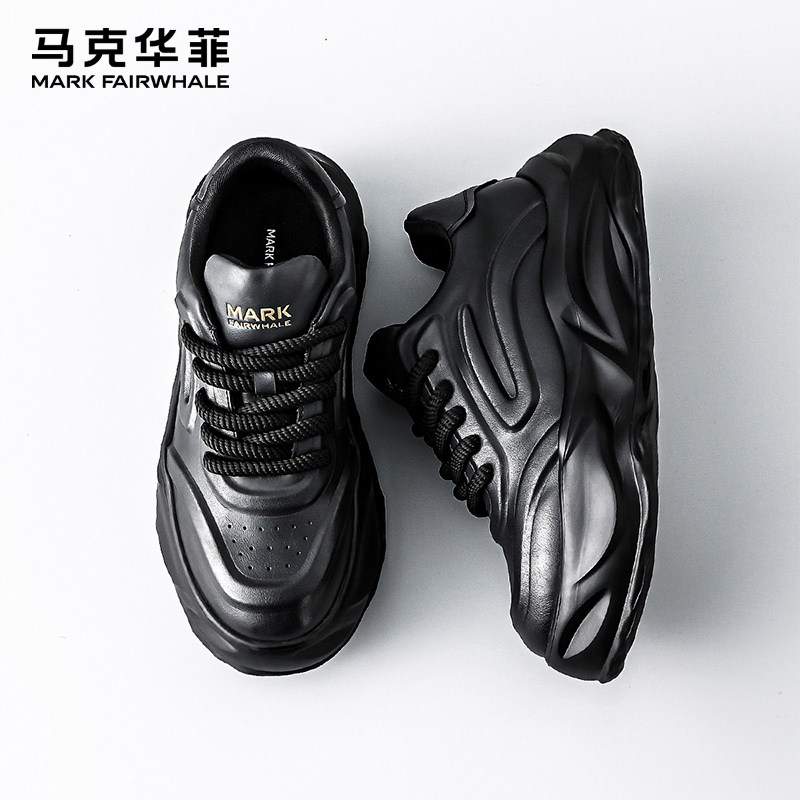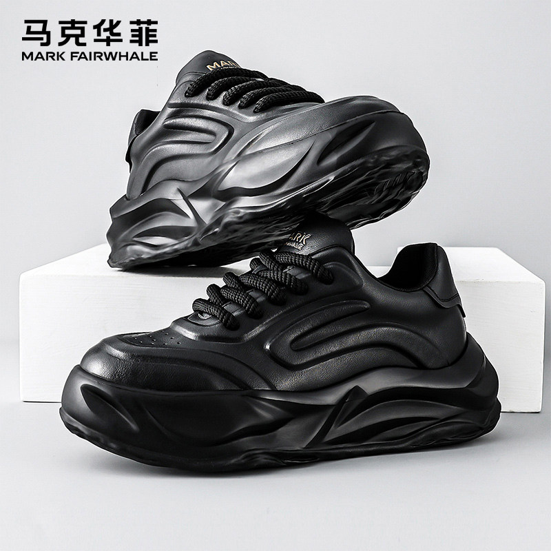 马克华菲男鞋秋季2025新款潮鞋运动休闲鞋男士黑色厚底老爹鞋板鞋