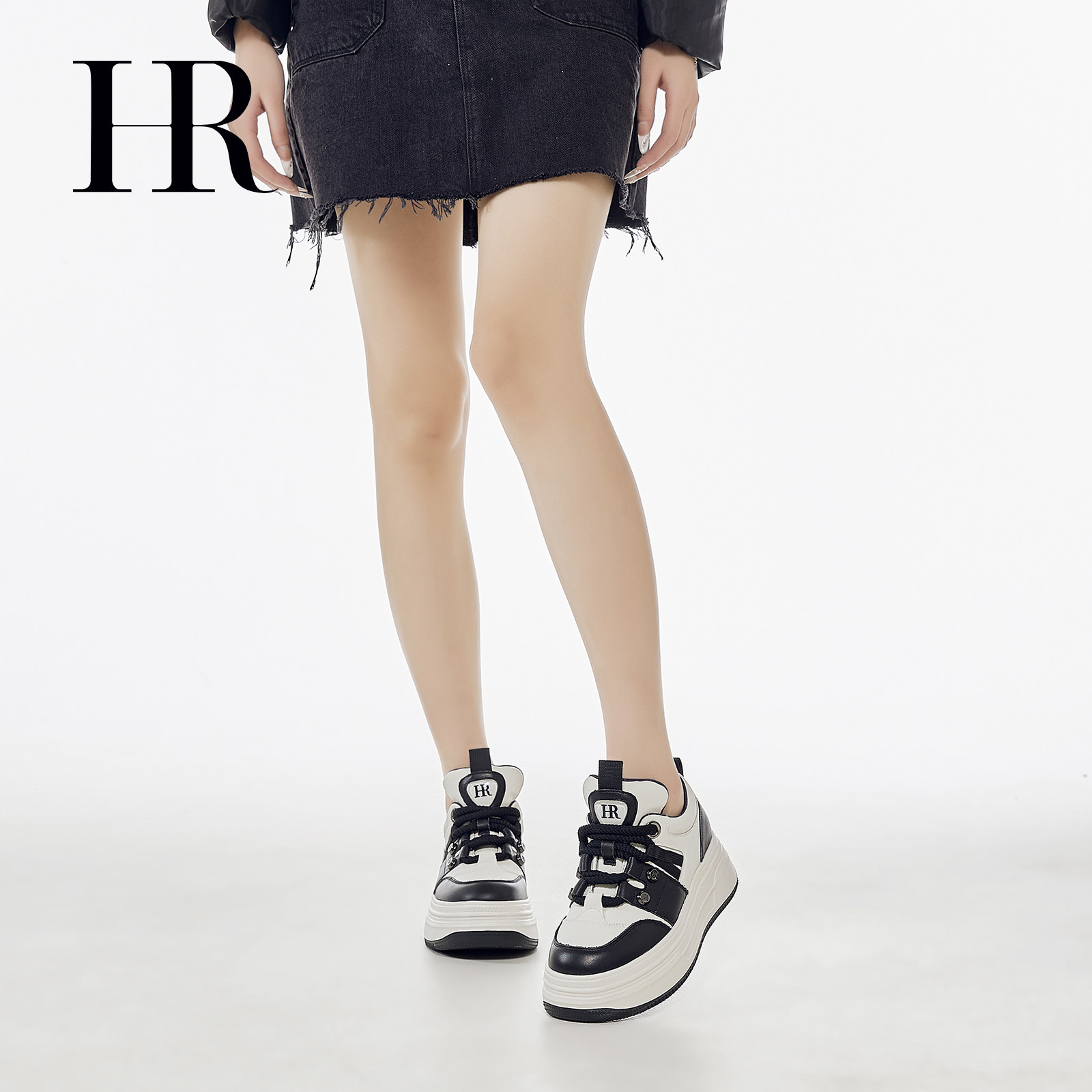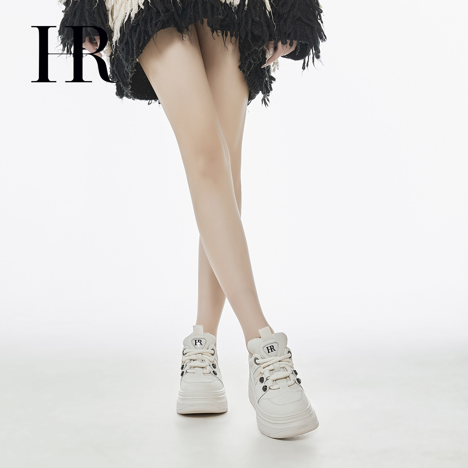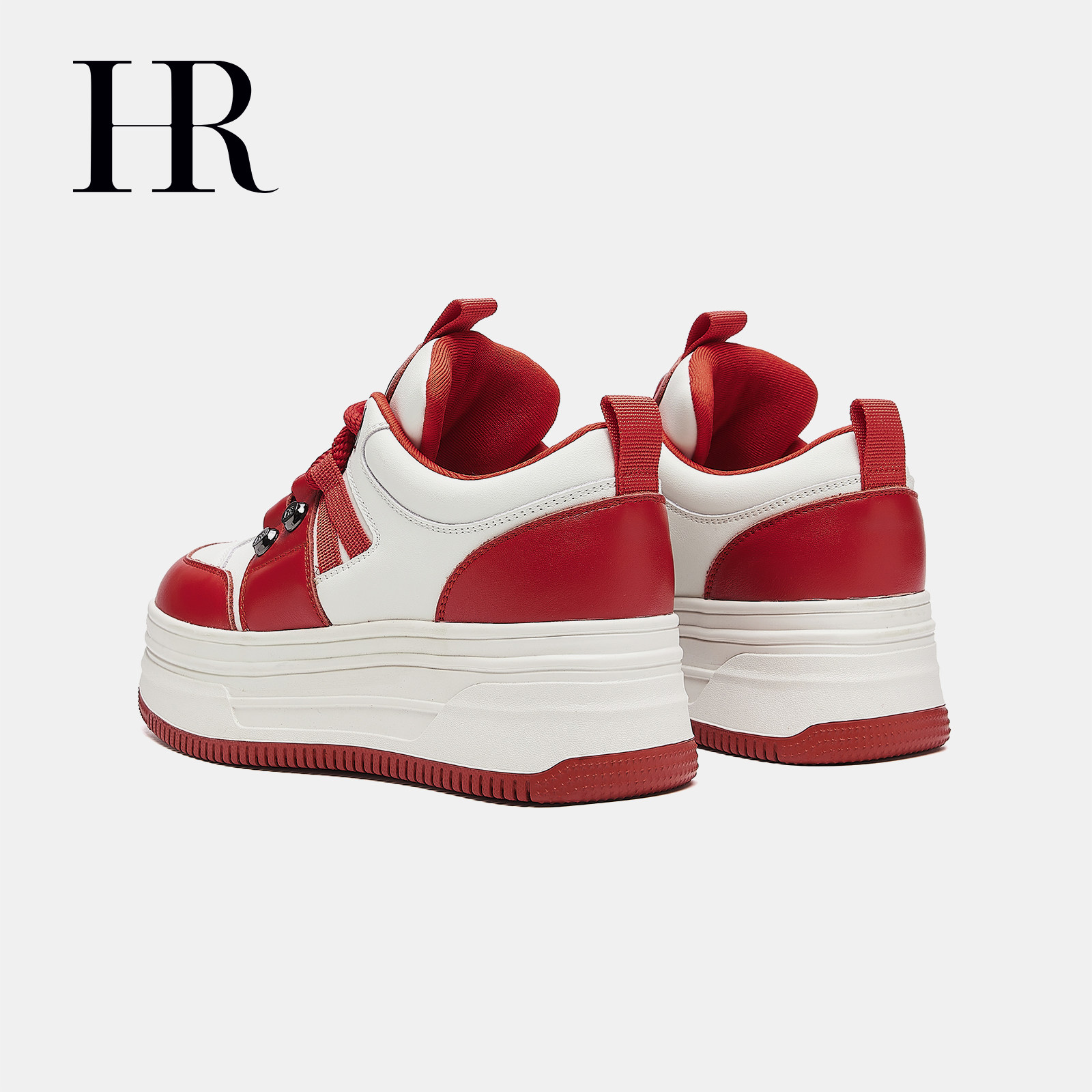 HR赫莲娜休闲板鞋2026年冬季新款女鞋子厚底内增高米红时尚运动鞋