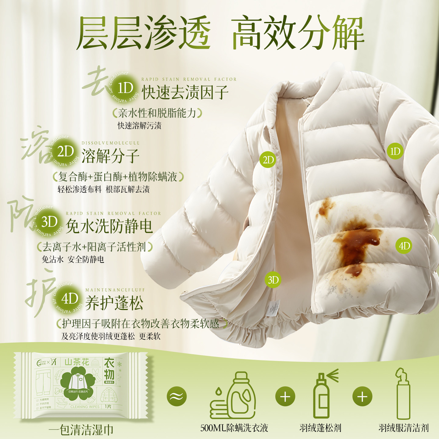 羽绒服清洁湿巾免洗强力去污渍便携应急不伤衣不留痕冬季去污神器