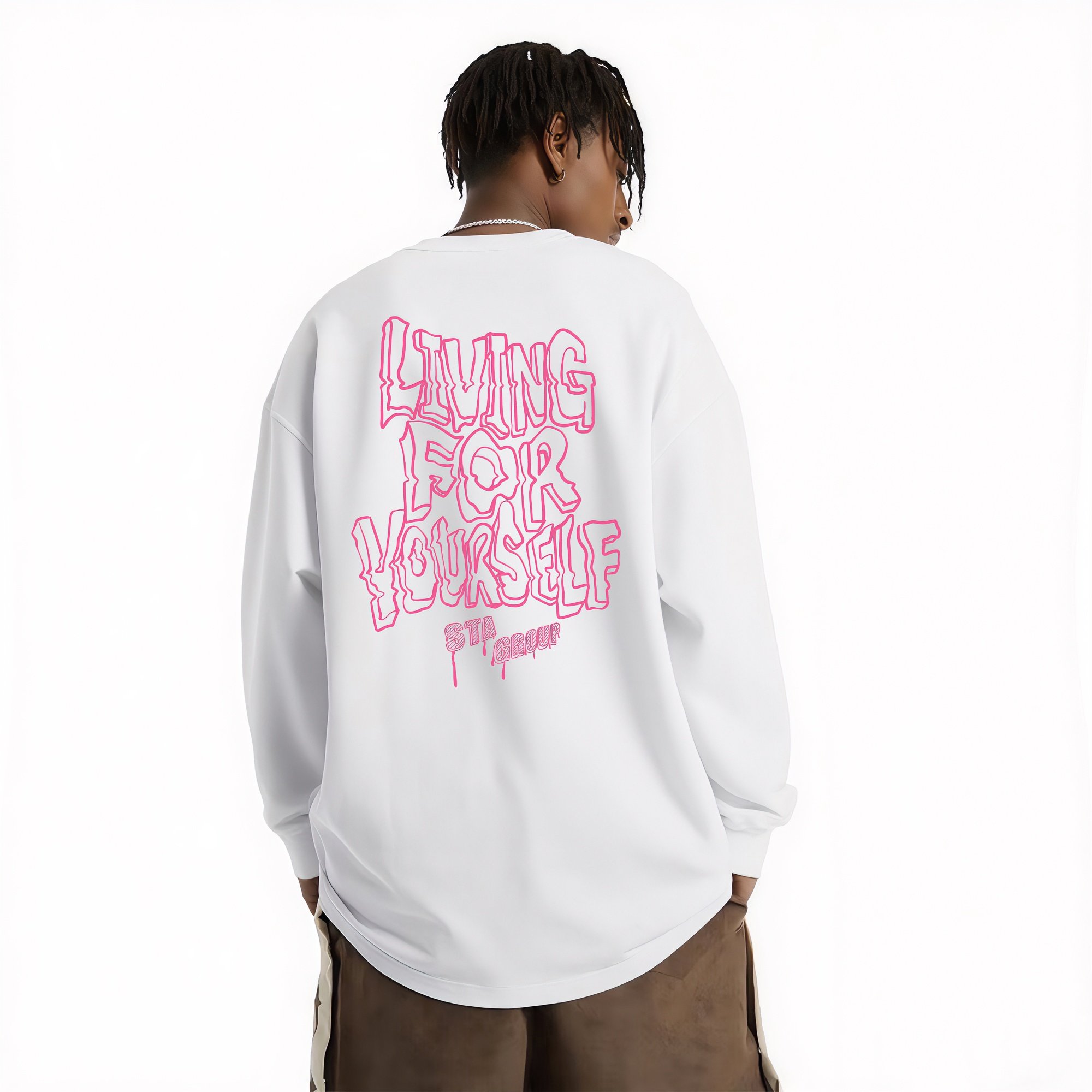 BURNIN*小火苗火焰横排长袖T恤男宽松美式街头加绒保暖打底衫上衣