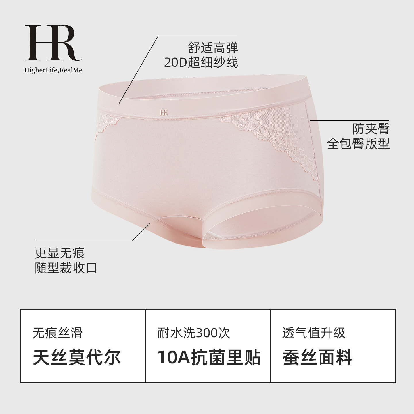 HR赫莲娜莫代尔中高腰内裤女10A抗菌桑蚕丝里裆全包不夹臀三角裤