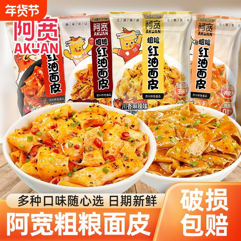 阿宽粗粮红油面皮荞麦玉米火鸡面非油炸干拌宽面皮充饥夜宵方便面
