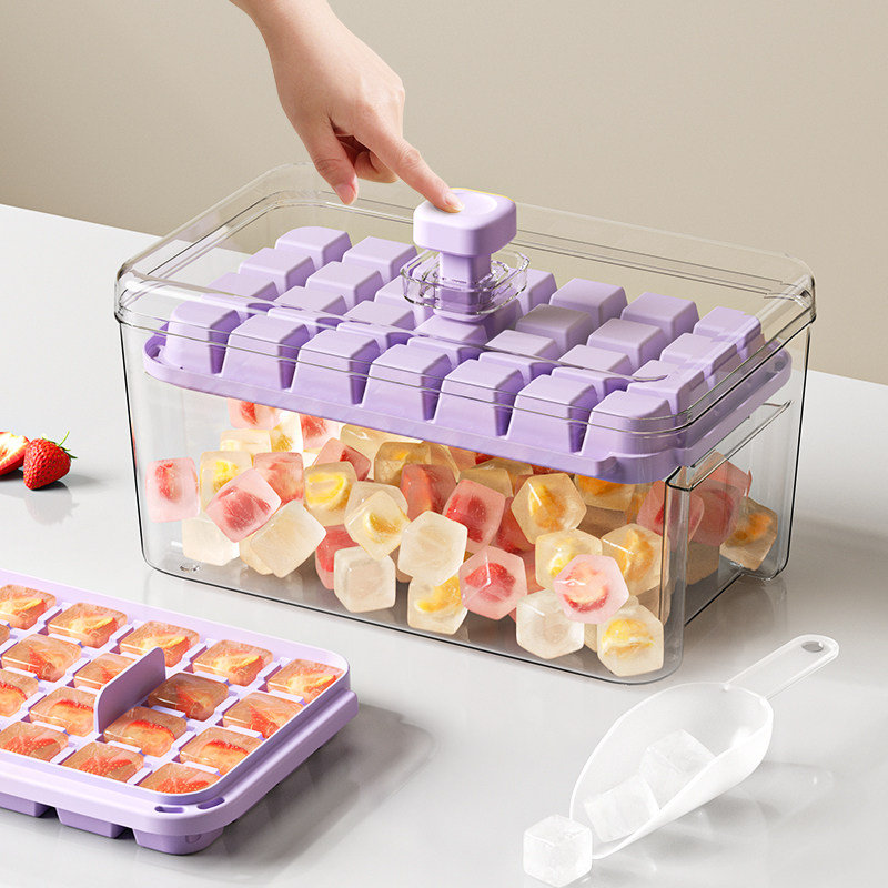 食品级冰块模具按压冰格家用冰箱自制冰块储存盒带盖冻冰块神器