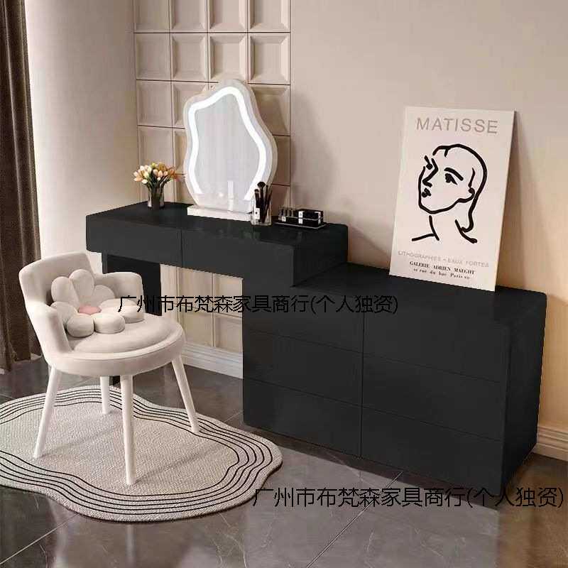 Tal奶油风梳妆台黑色化妆台斗柜一体梳妆台化妆镜卧室梳妆台梳妆