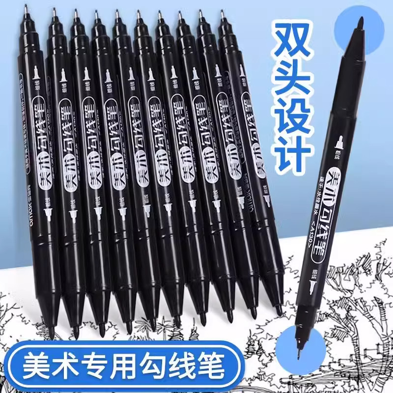 晨光美术勾线笔黑色水性双头记号笔儿童绘画手绘细勾边无味马克笔小学生用描边美术划线笔速干笔批发包邮