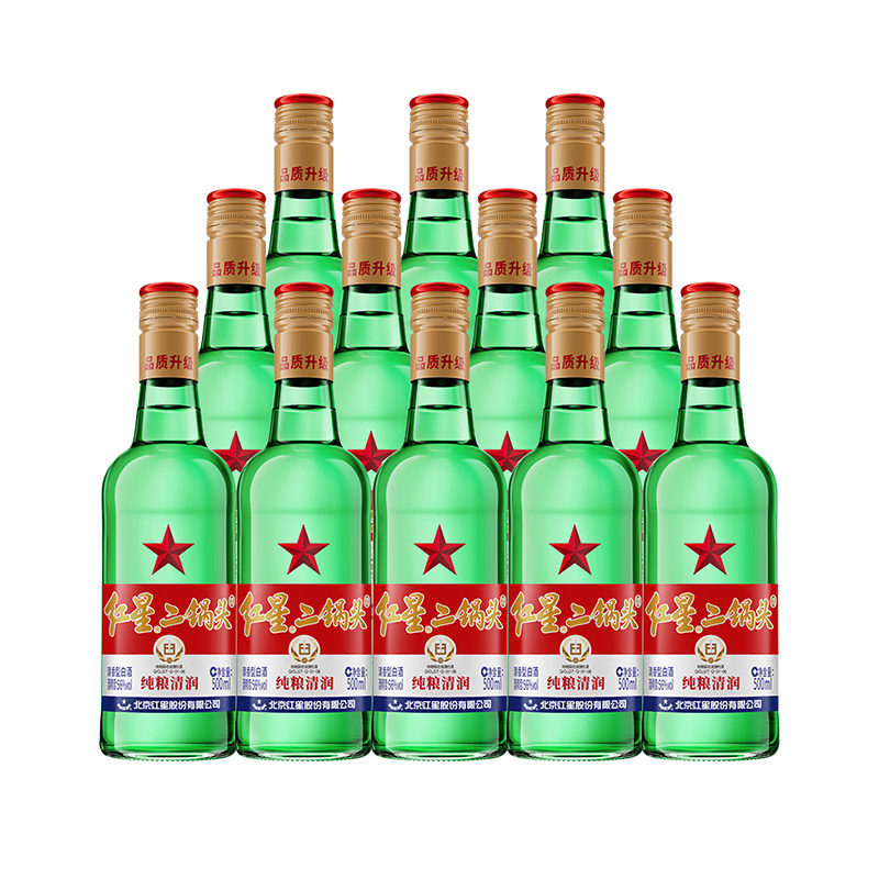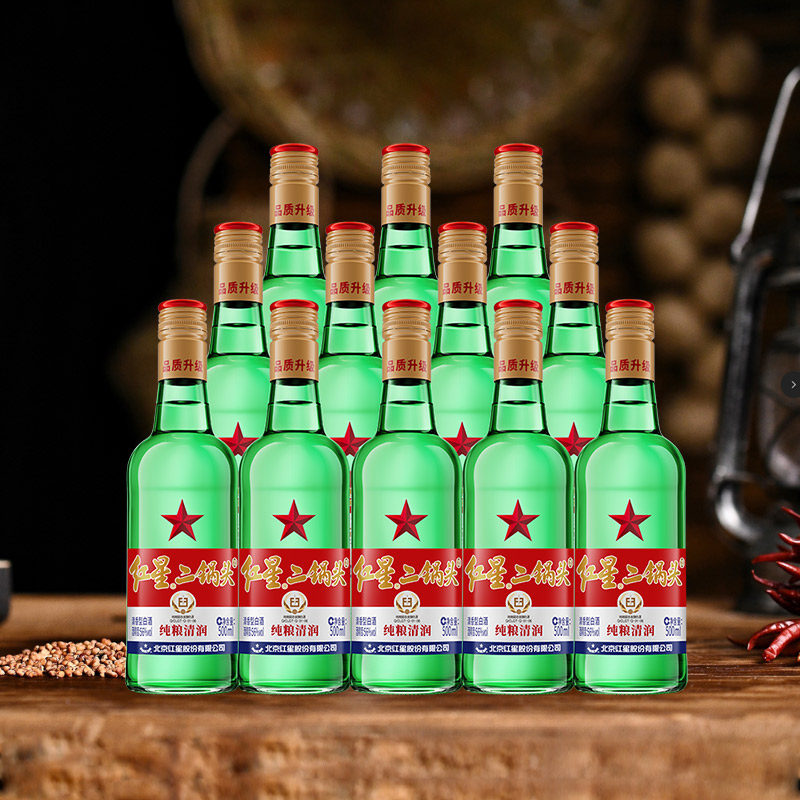 红星二锅头大二绿瓶56度500ML*12瓶整箱装清香型白酒纯粮口粮酒