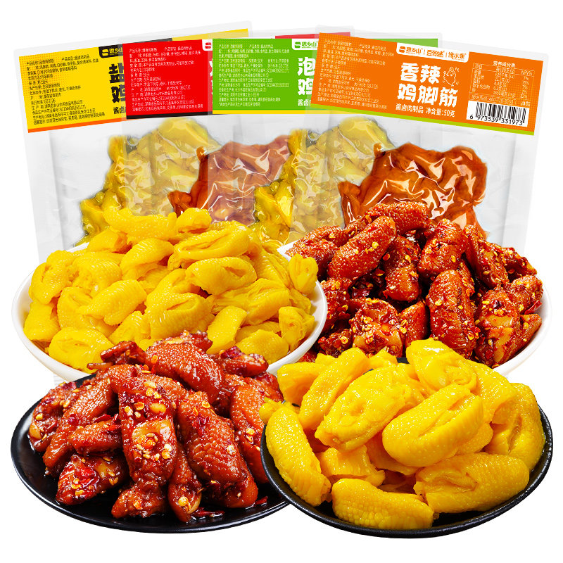 思乡山盐焗鸡脚筋去骨即食筋道泡椒无骨鸡爪熟食小吃学生休闲零食