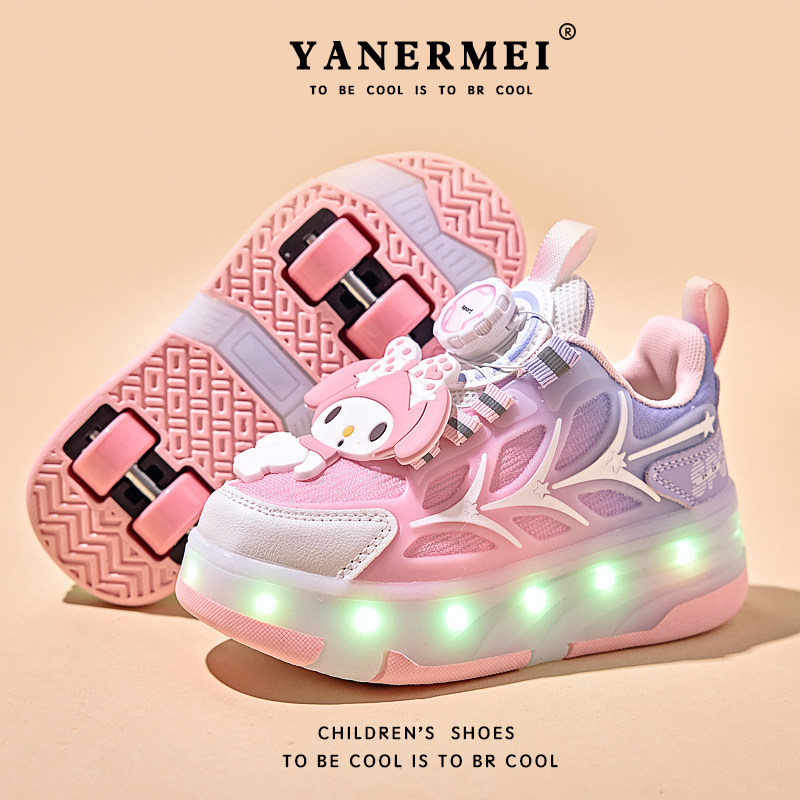 官网品牌库洛米女童暴走鞋春秋2026新款儿童滑轮鞋四轮隐形溜冰鞋