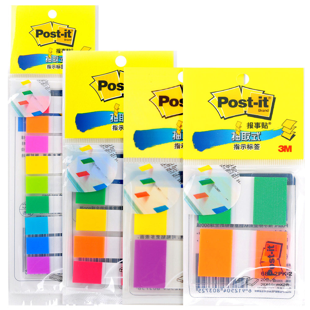 3M索引贴报事贴抽取式指示标签纸笔记本指示页码文件夹透明防便利贴水彩色书签荧光标贴学生用重点分类n次贴