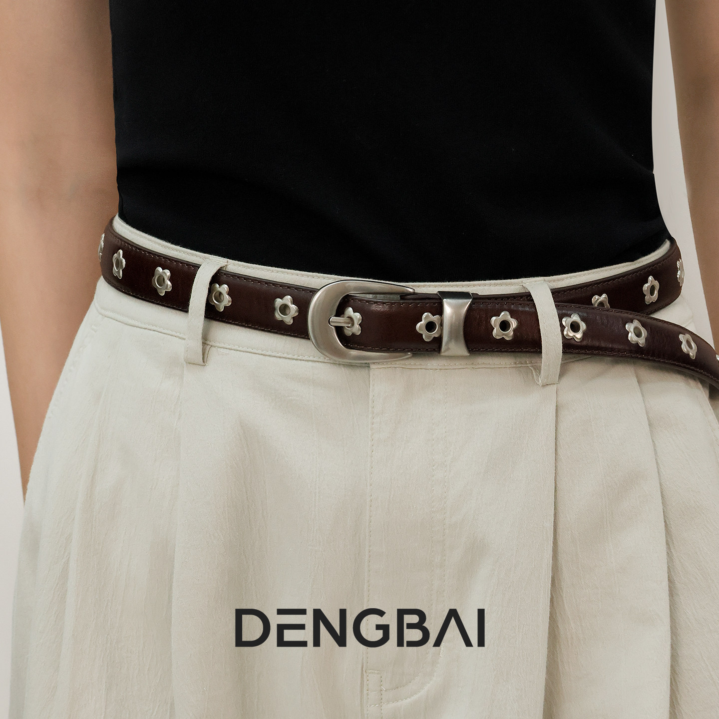 登白DENGBAI 秋冬新款 梅花钉 头层牛皮腰带时尚牛仔裤皮带