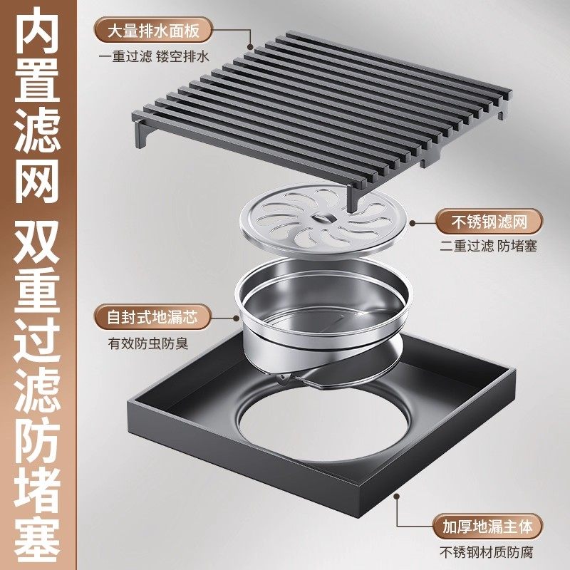 地漏加厚不锈钢防臭五金过滤芯卫生间阳台全铜下水道洗衣机浴室