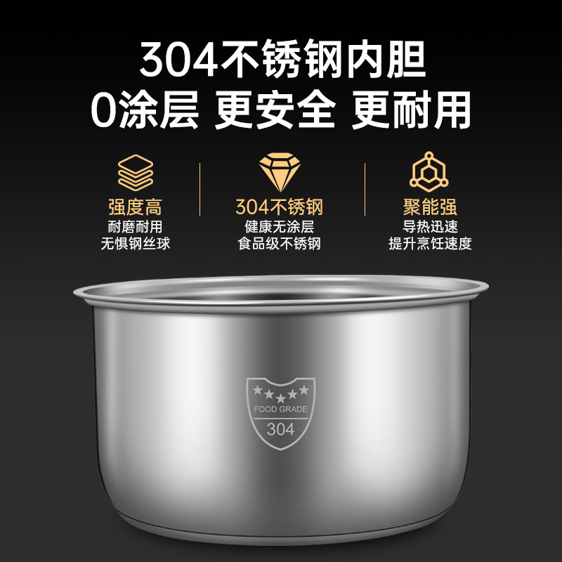 美的无涂层电饭煲4L家用0涂层IH电饭锅316不锈钢内胆正品官方旗舰
