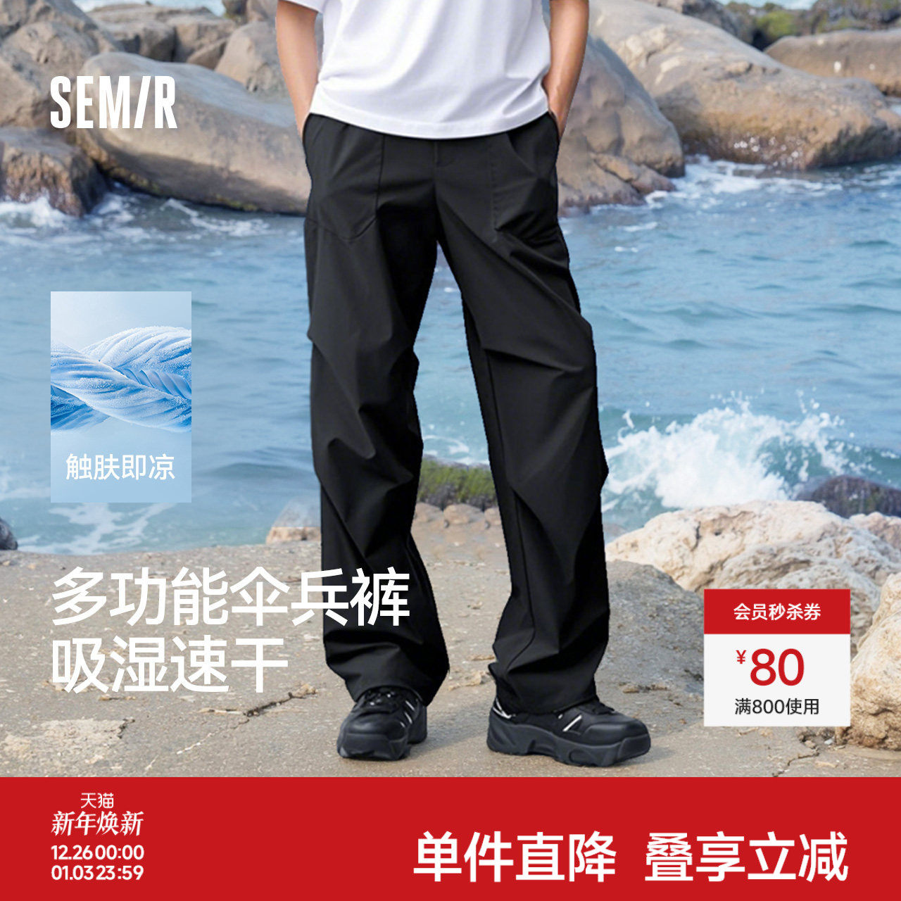 宽松直筒工装伞兵裤 凉感吸湿速干